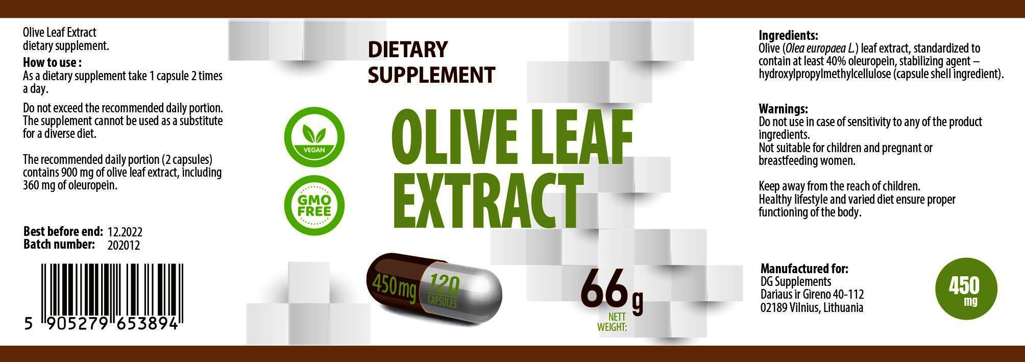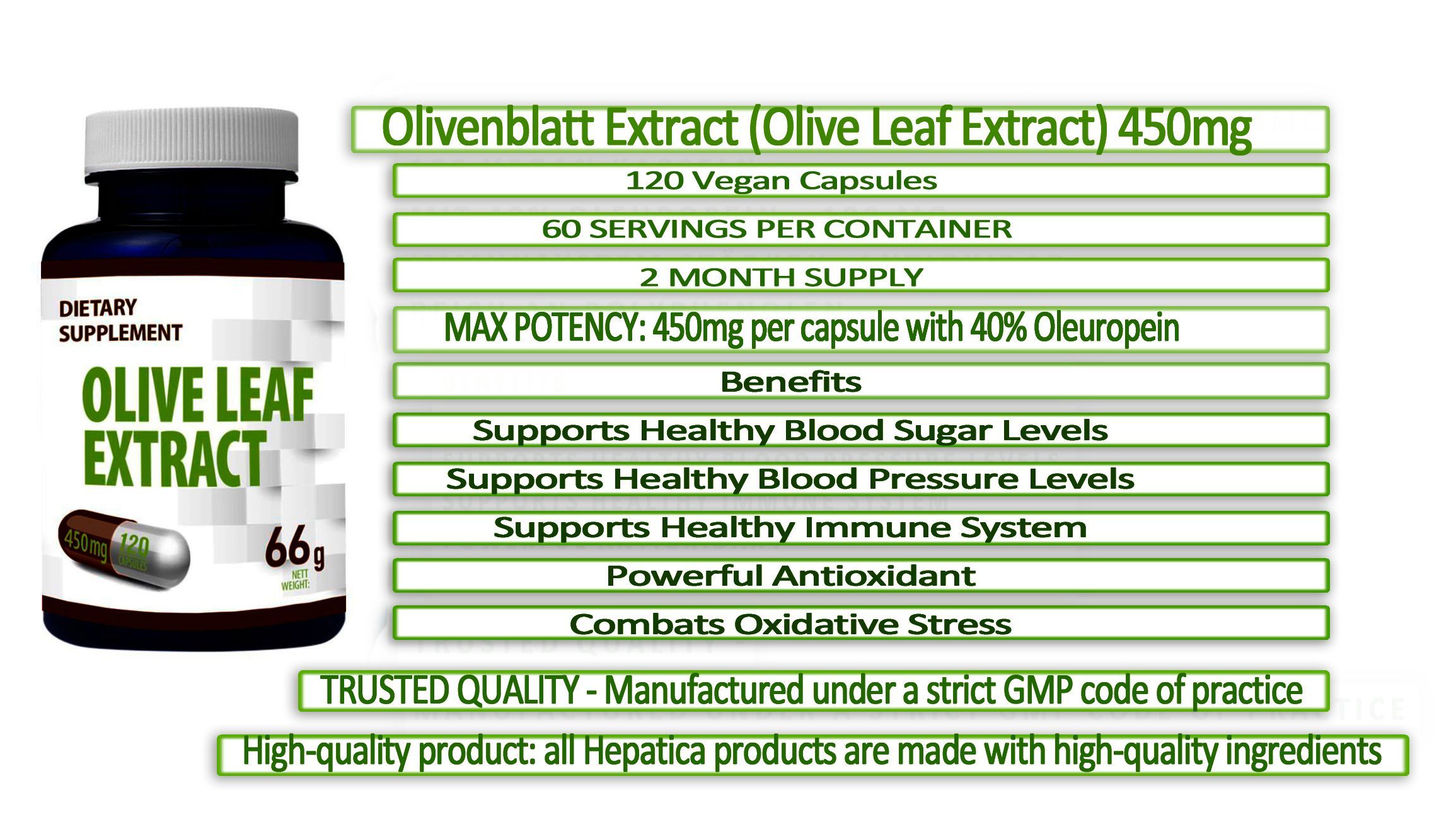 Olive Leaf Extract 450mg 120 Vegan Capsules with 40% Oleuropein - 180 mg, Immune Syst