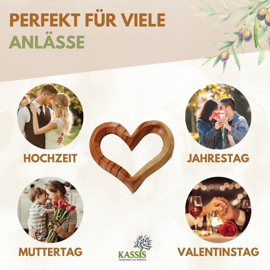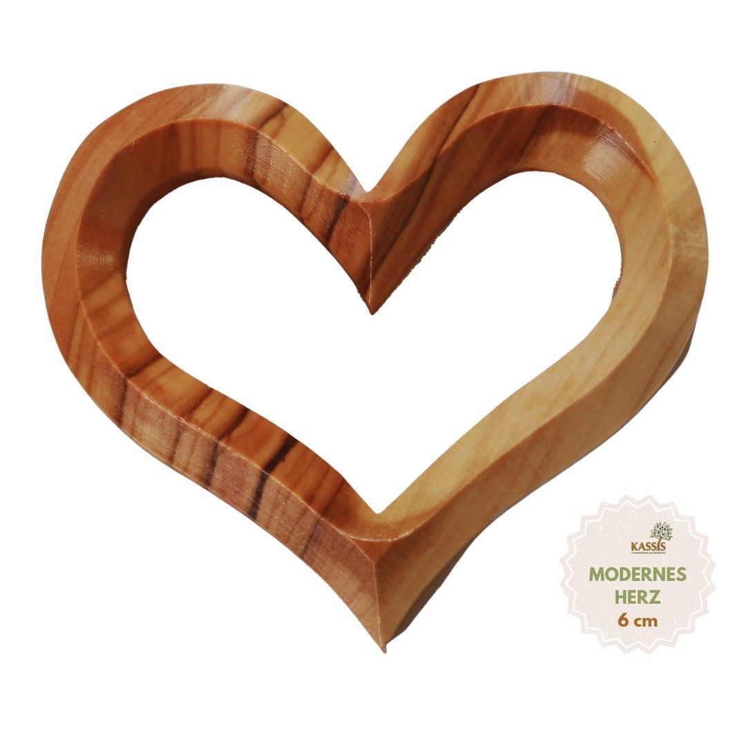 Olivenholz Herz in moderner Form Glücksbringer Mitbringsel