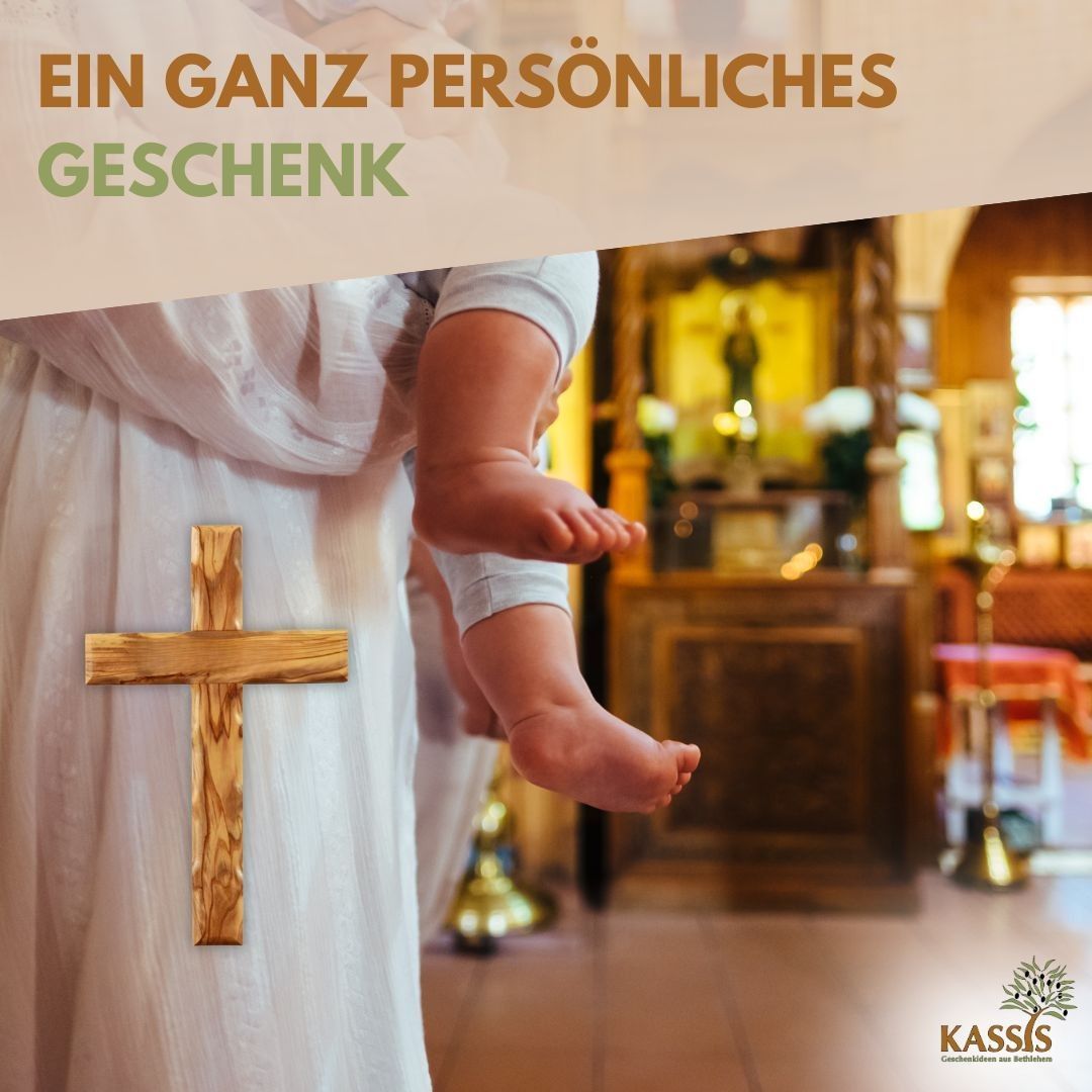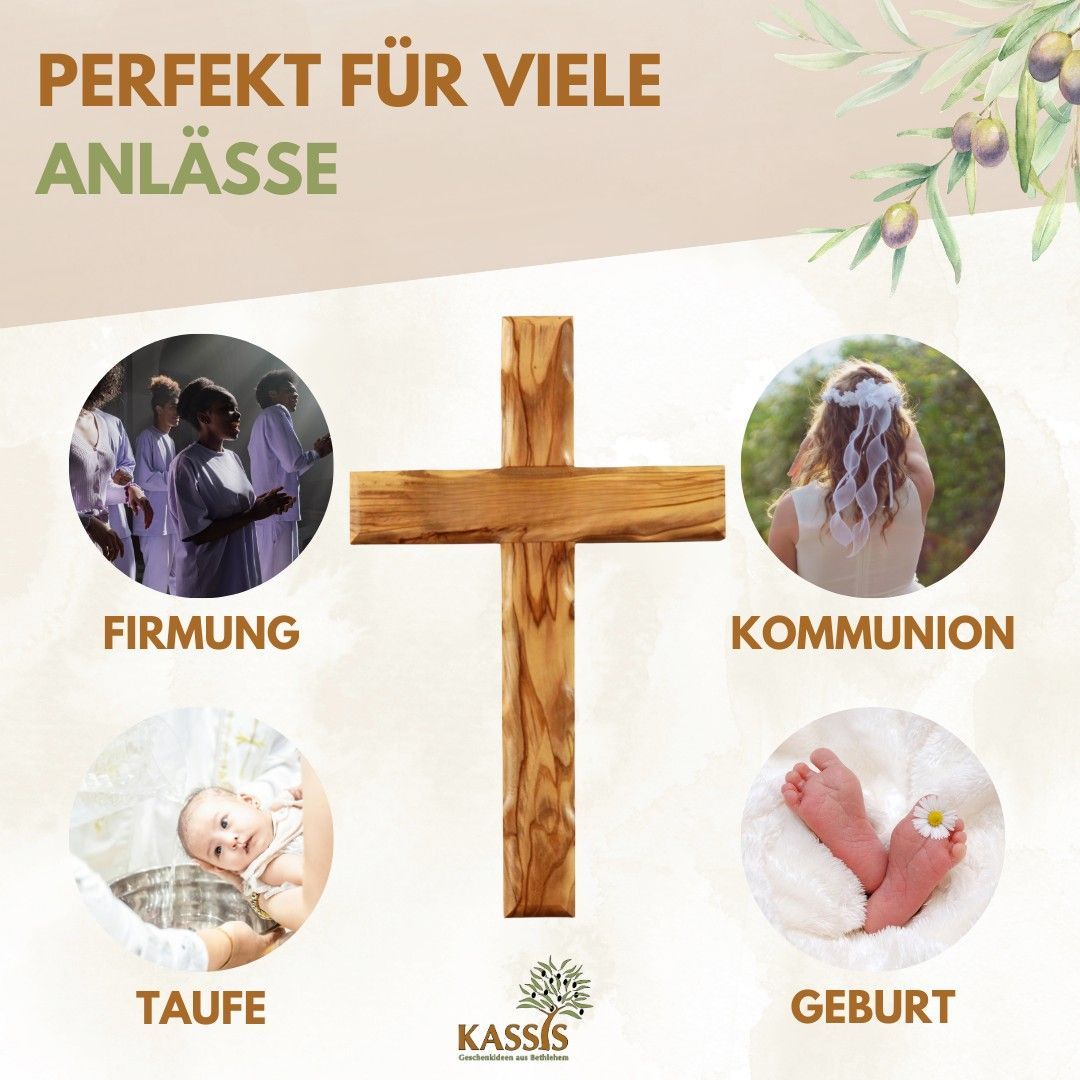 Olivenholz Kreuz Kruzifix Wandkreuz schlicht aus Bethlehem Taufgeschenk