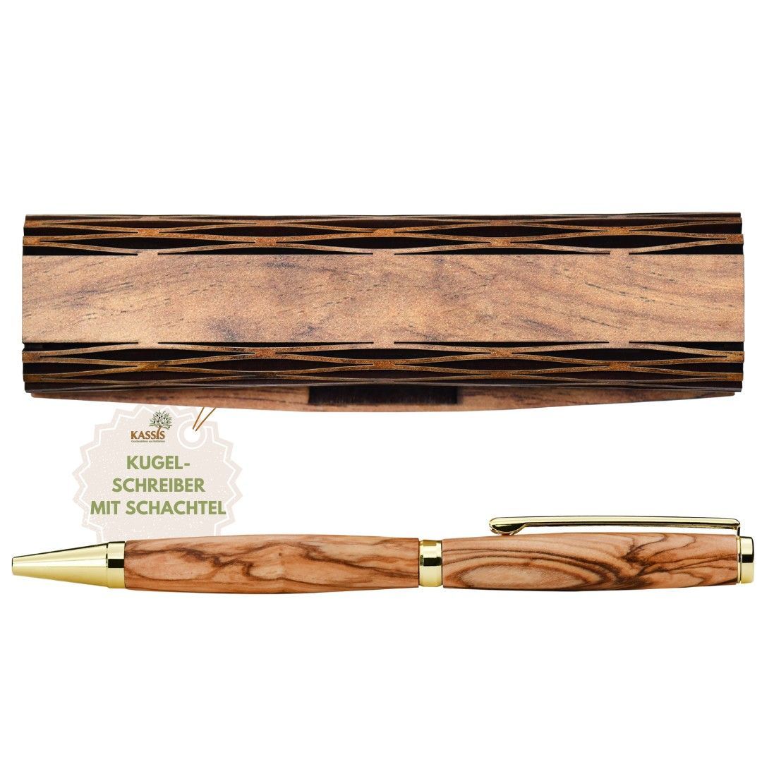 Olivenholz Kugelschreiber in Holzschachtel Geschenkidee Kuli zum Geburtstag Jubiläum