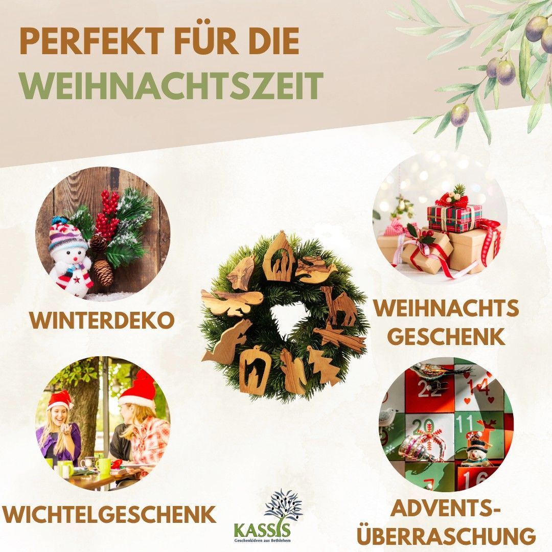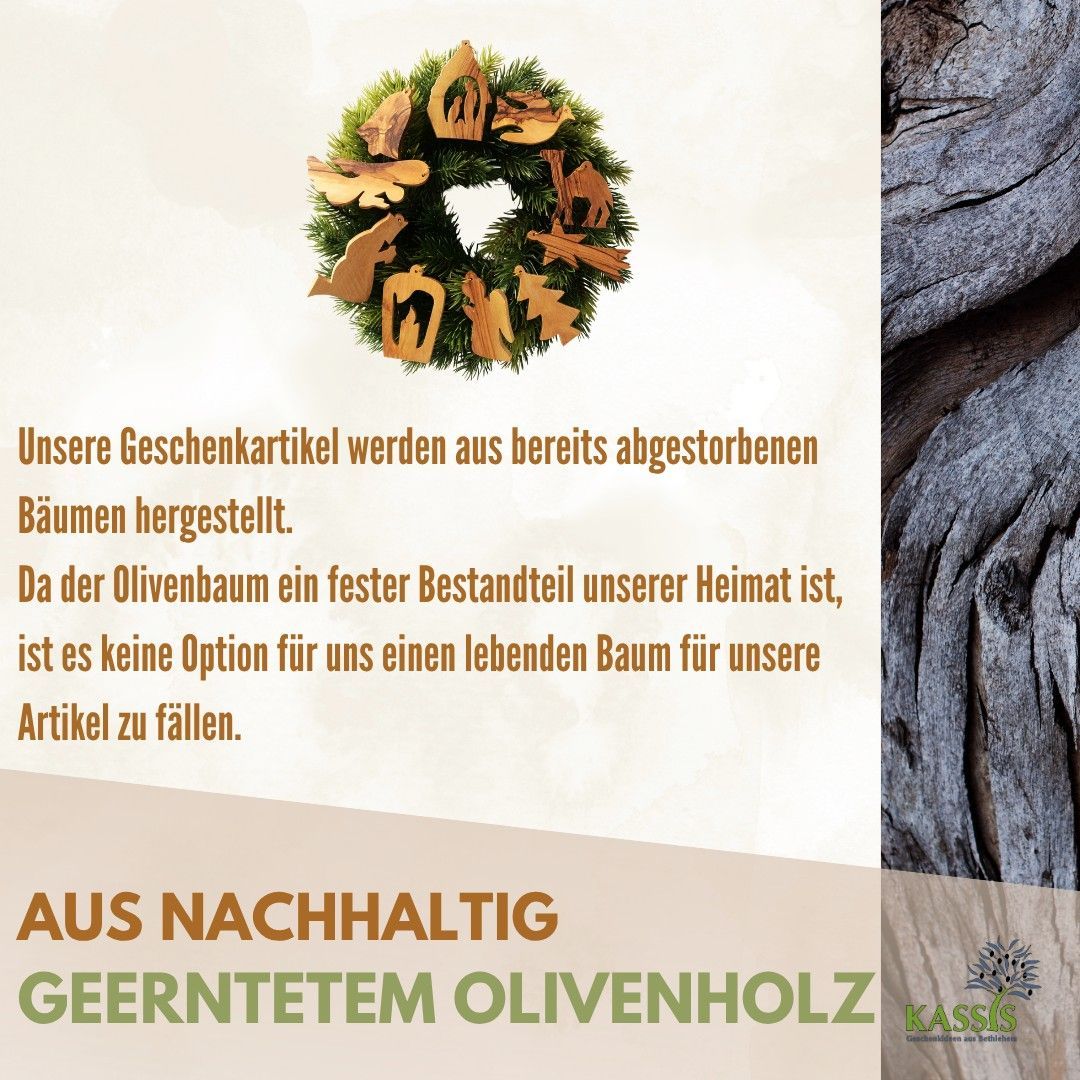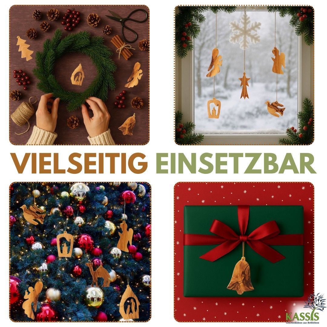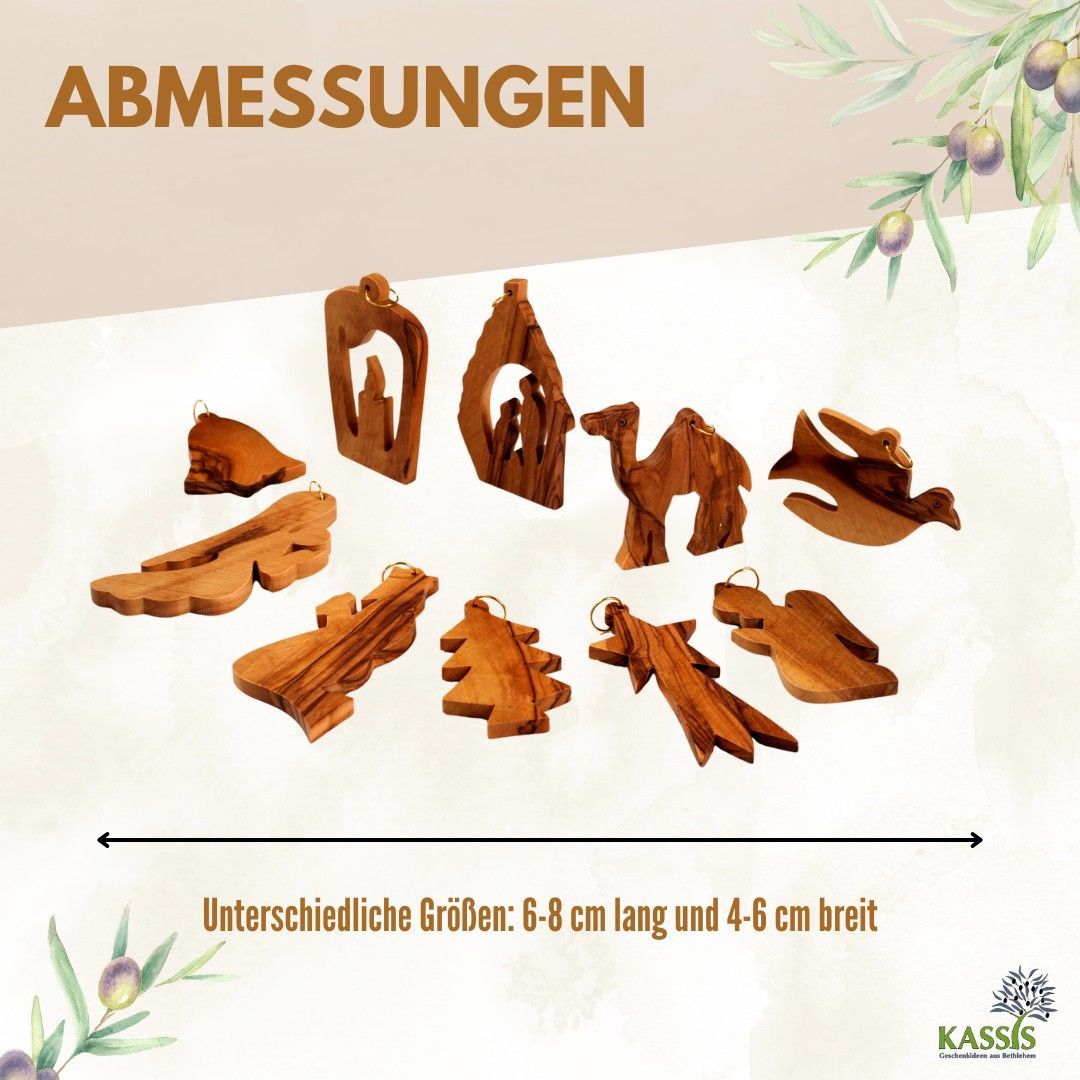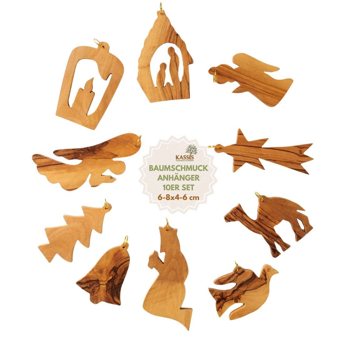 Olivenholz Weihnachtsdeko Baumschmuck Anhänger 10er Set handgemacht in Bethlehem