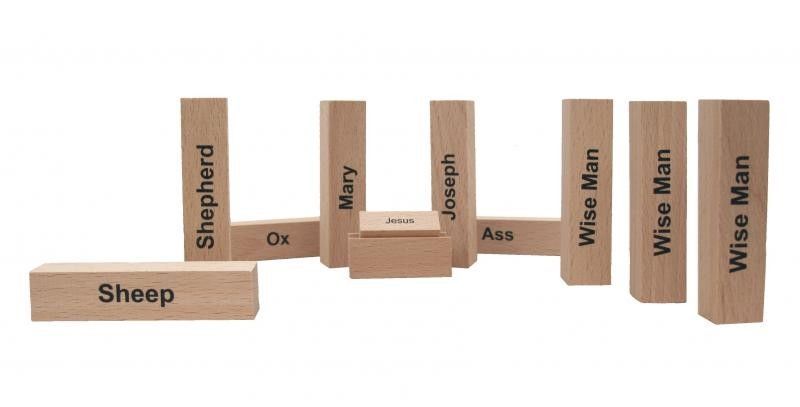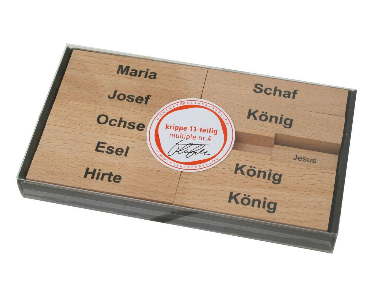 Oliver Fabel, Puristische Weihnachtskrippe, 11 Teile, Buchenholz