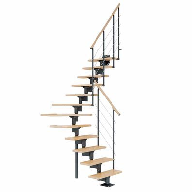 Dolle Mittelholmtreppe Boston 228-300cm Geschosshoehe ¼-gewendelt in Buche/Anthrazi