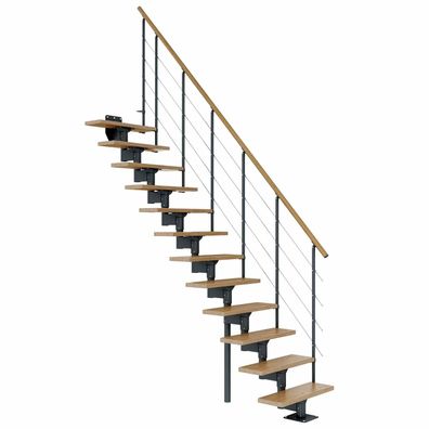 Dolle Mittelholmtreppe Boston 228-300cm Geschosshoehe ¼-gewendelt in Eiche/Anthrazi