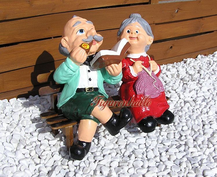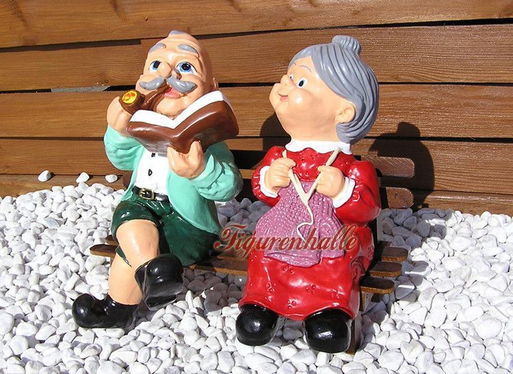 Oma Opa auf Bank Klein als Dekofigur Garten Statue Skulptur Dekoration Deko