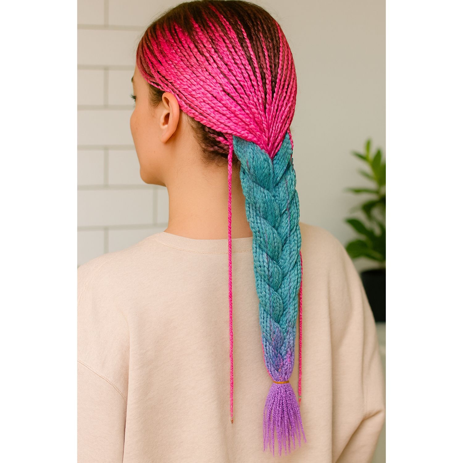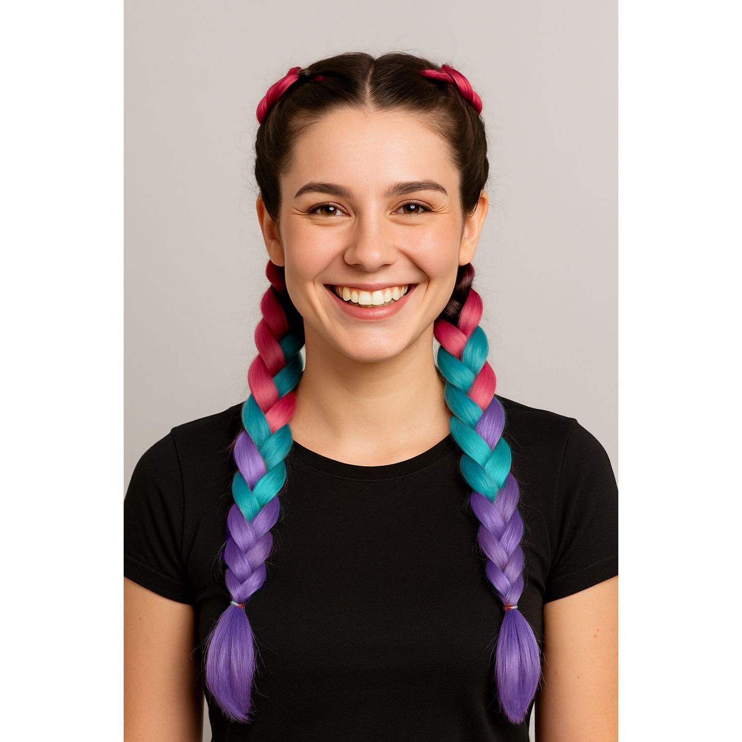 Ombre Kunsthaar Zopf 60cm Synthetische Haarverlängerung grau rosa lila