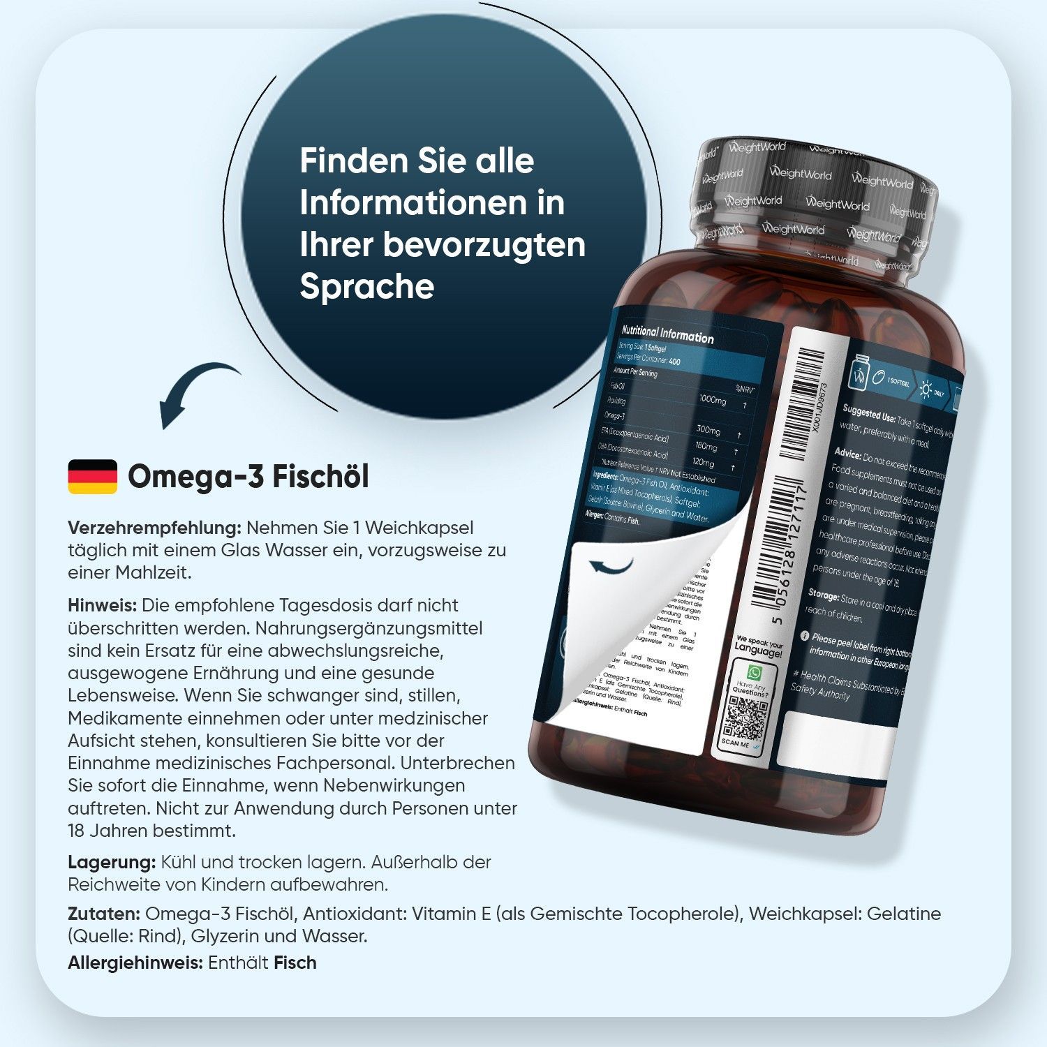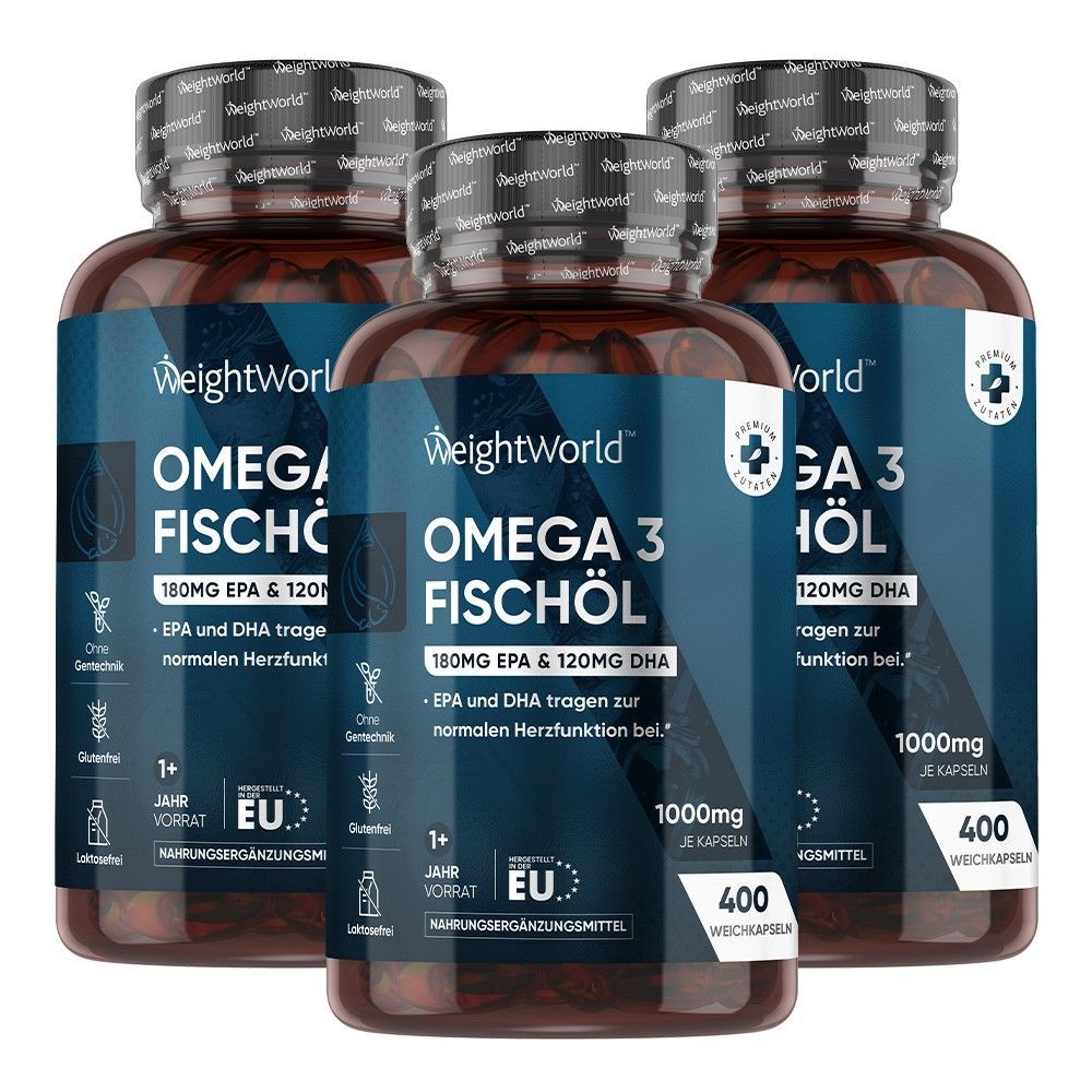 Omega 3-400 Kapseln 1+ Jahr Vorrat-1000mg Fischöl pro Tag - 3 Flaschen - WeightWorld