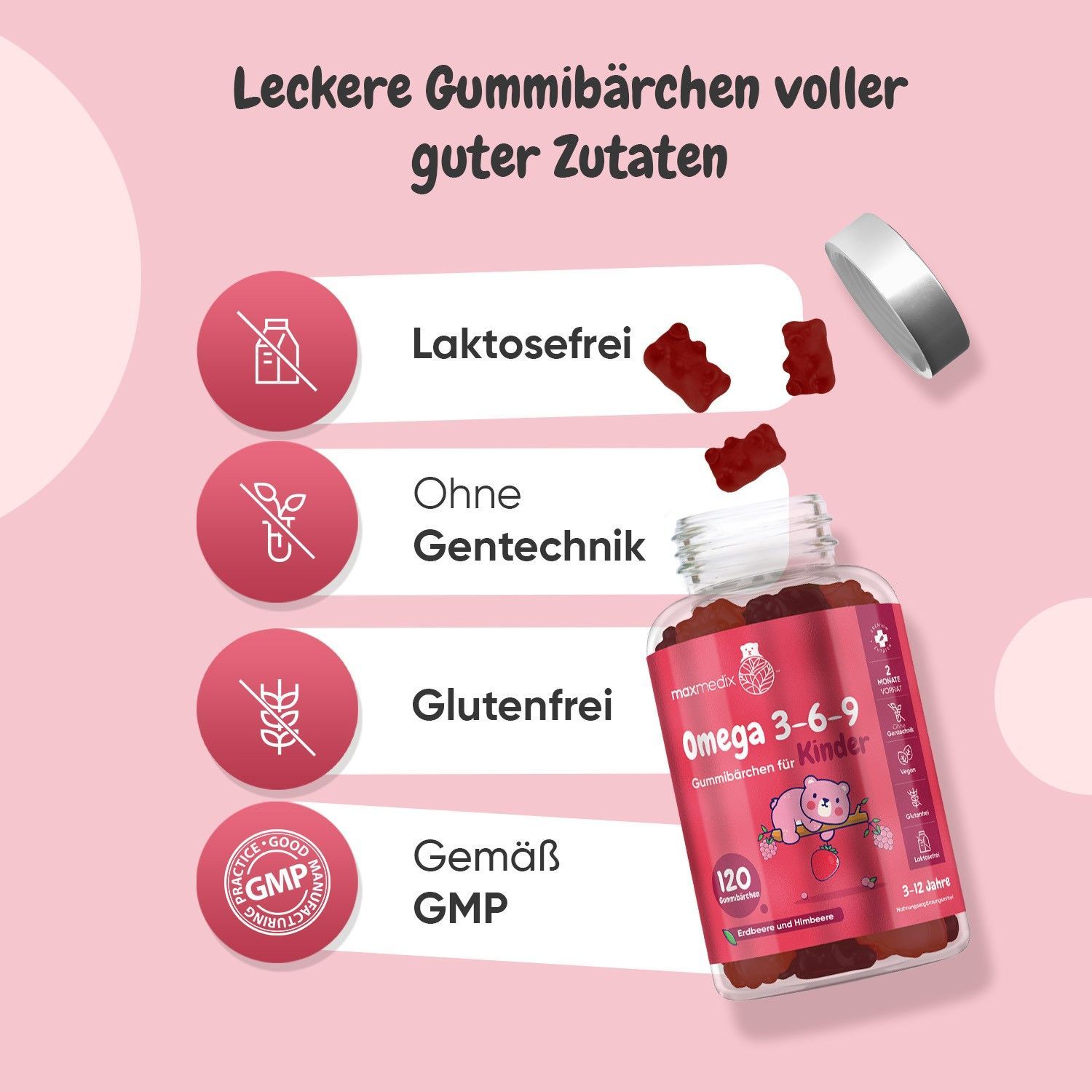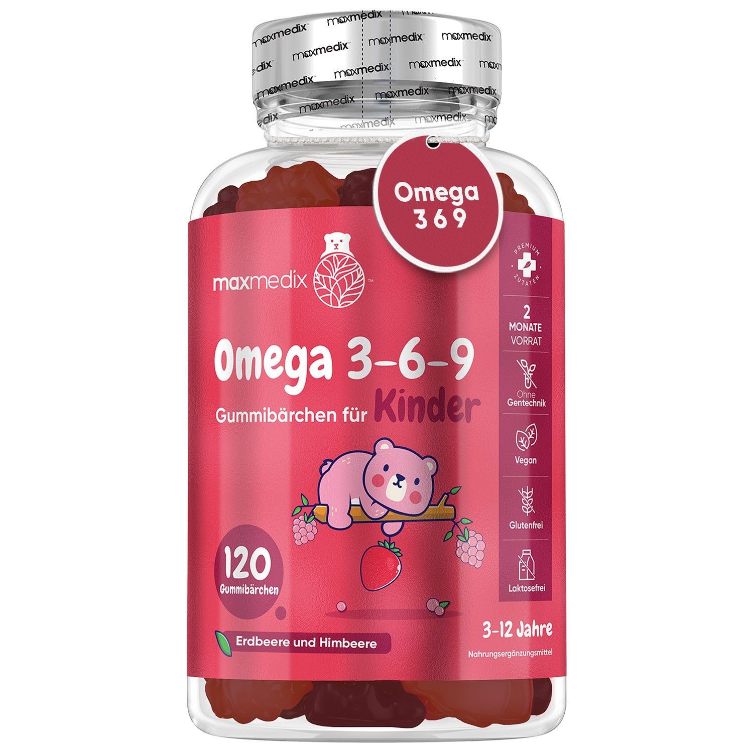 Omega 3 6 9 Gummibärchen für Kinder - 120 Vegane Gummies - 2 Monatsvorrat - maxmedix
