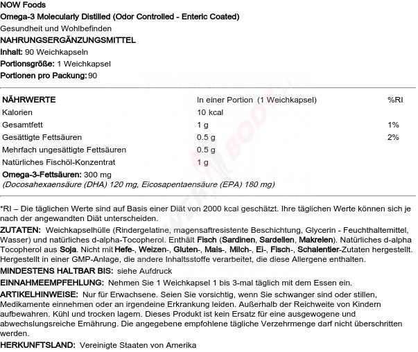 NOW Foods Omega-3 Molecularly Distilled Fish Oil - 100 softgels