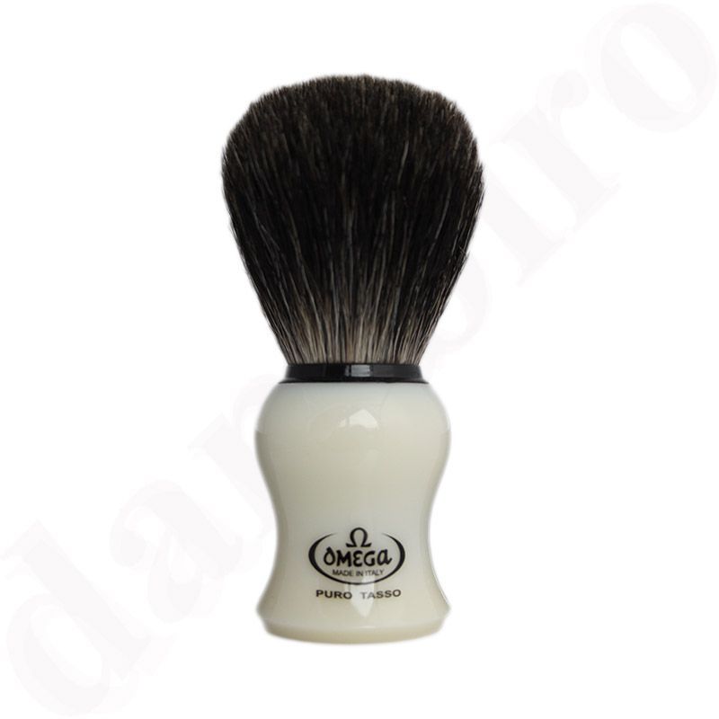 Omega Rasierpinsel Dachshaar Stockzupf 13019 Pure Badger mit beigem Griff