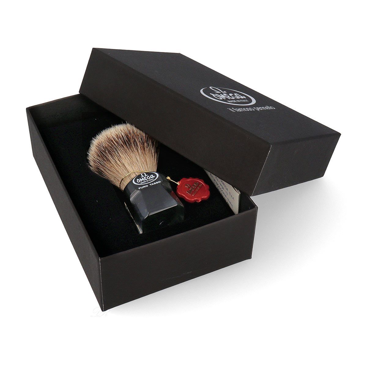 Omega Rasierpinsel Silberspitze Dachshaar 631 mit Harzgriff