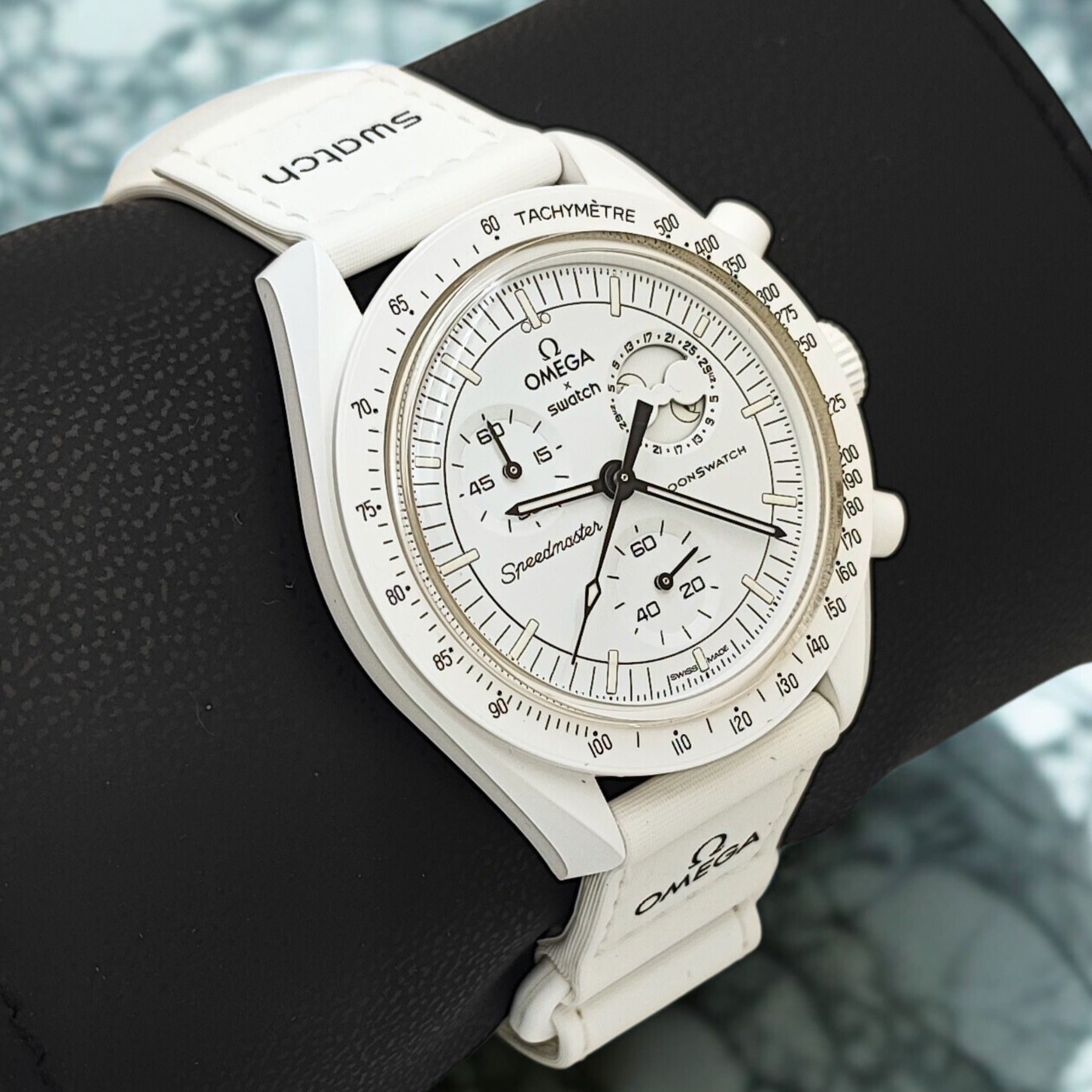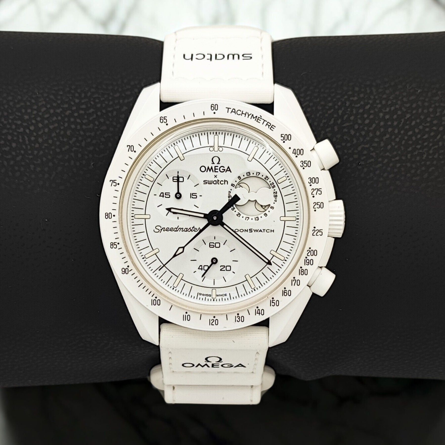 Damenuhr - Herrenuhr - Unisex - Sammlerstück - Omega x Swatch – Mission to the Moonphase Full Moon Erlebe die Magie der Mondphasen in einem ikonischen Design: Die Mission to the Moonphase – Full Moon ist das neueste Highlight der begehrten MoonSwatch-Kollektion – eine stilvolle Hommage an die legend