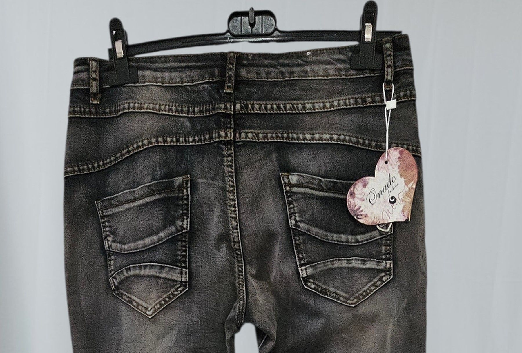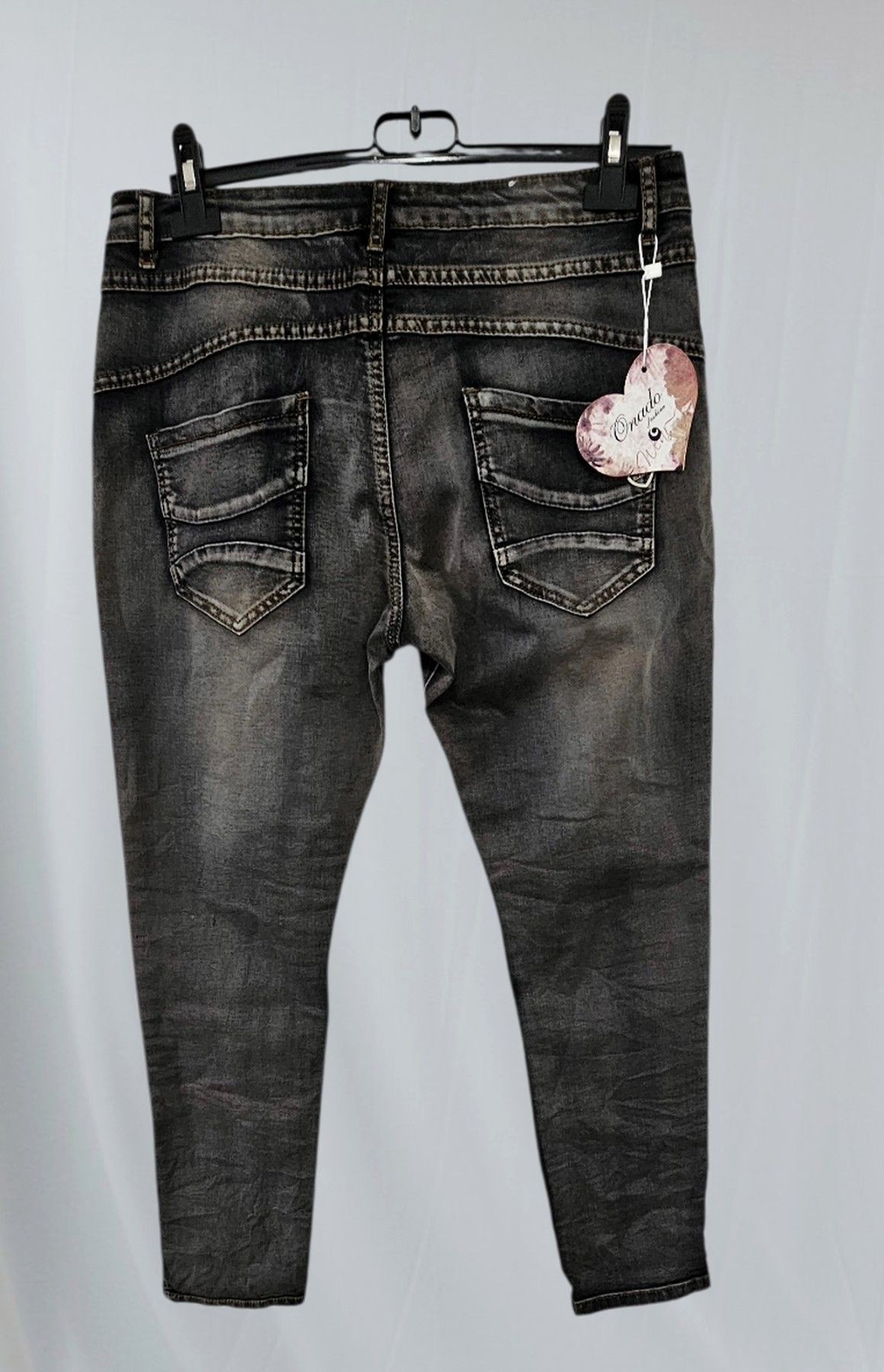 Onado Jeans Stretch Hose Knöpfe leichte Waschung Taschen Quernaht Dunkelgrau Gr. L