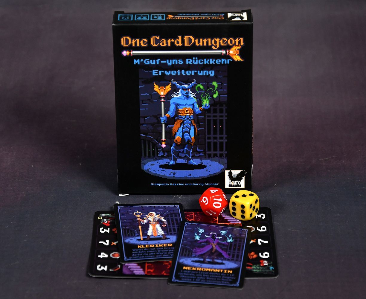One Card Dungeon ist ein kompakter Dungeon Crawler für eine Person. Eine einzige Karte repräsentiert die 12 Level. Mit einer Handvoll Würfel stellst du dich verschiedenen Monstern und verbesserst Schritt für Schritt deine Fertigkeiten, um am Ende das Zepter von M´Guf-yn in Händen zu halten. Neue Kla