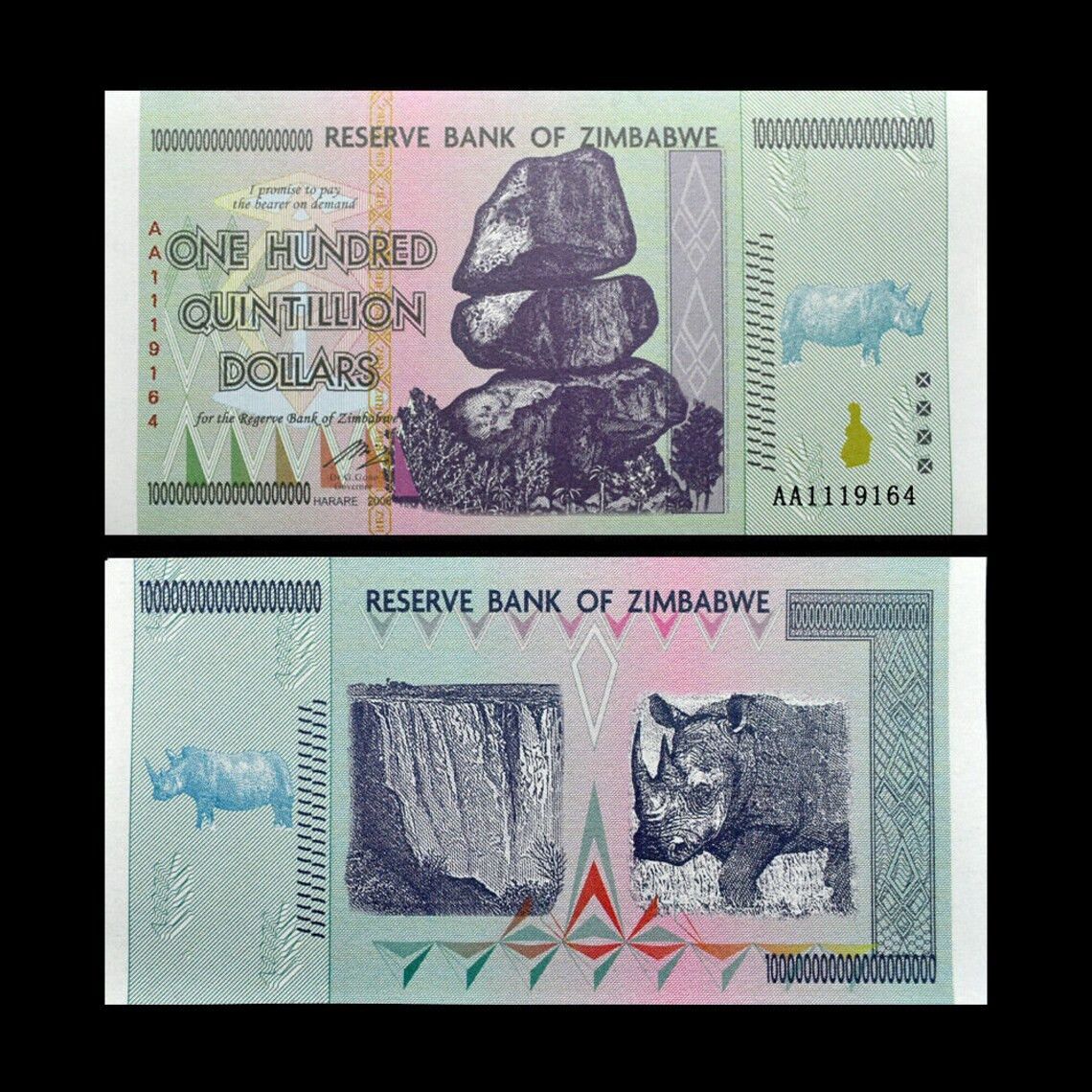 One Hundred Quintillion Dollar with Fluorescence Banknote Zimbabwe Bankfrisc(Zimb600)