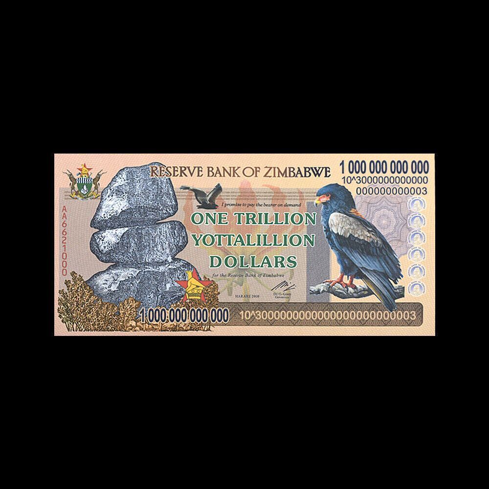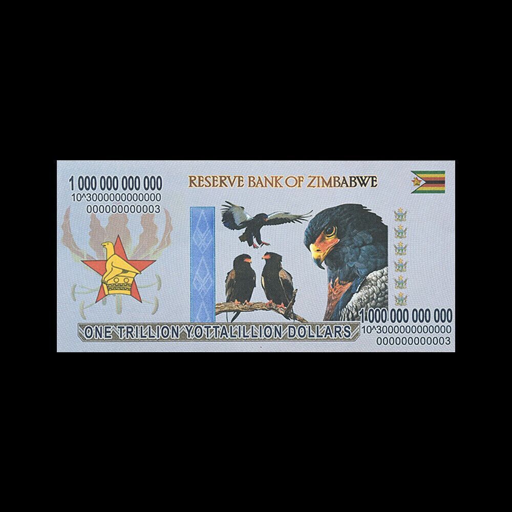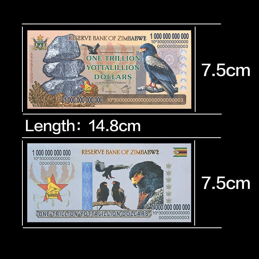 Diese Auflistung ist für eine extra feine One Trillion Yottalillion Simbabwe Zimbabwe Diese Simbabwe Note war ein Teil der Serie Inflationswährung. Die Scheine haben unterschiedliche Seriennummern und gelten nur als Fantasy Banknoten weil sie zu keiner Zeit im Handel waren!!! Mehr als ein Jahrzehnt