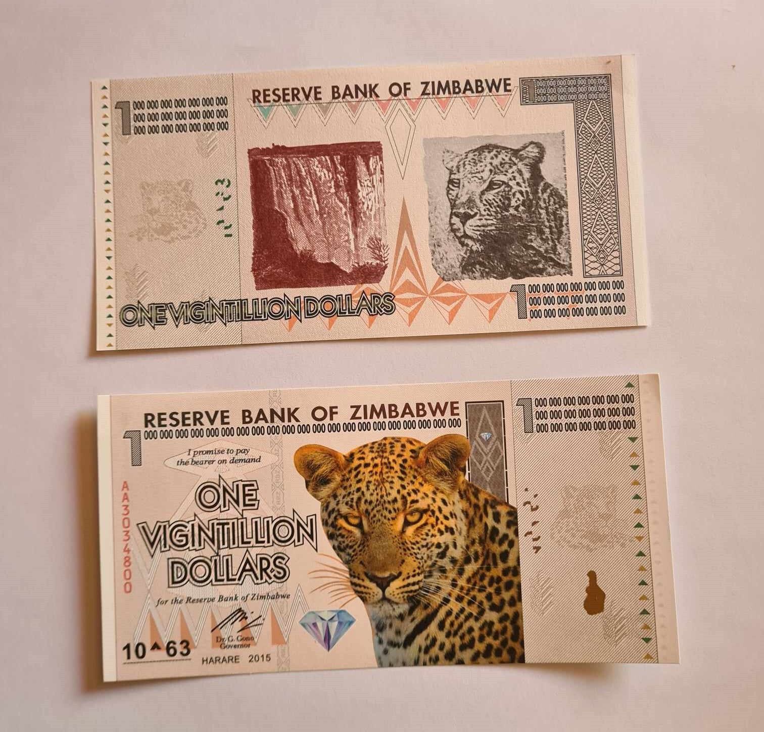 Diese Auflistung ist für eine extra feine One Vigintillion Simbabwe Zimbabwe 2015 Diese Simbabwe Note war ein Teil der Serie Inflationswährung. Die Scheine haben unterschiedliche Seriennummern und gelten nur als Fantasy Banknoten weil sie zu keiner Zeit im Handel waren!!! Mehr als ein Jahrzehnt nach