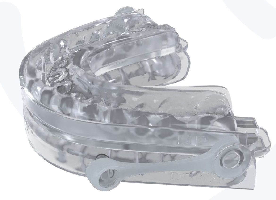 Zweiteilige Unterkiefer-Protrusionsschiene gegen Schnarchen, klinisch validiert