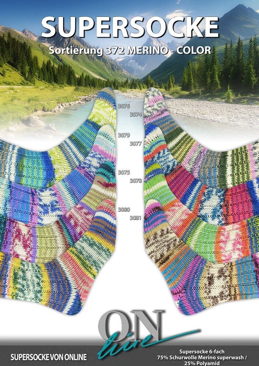 ONline Sockenwolle Sortierung 372 6-fach Merino - Color 150 g Farbe 3076