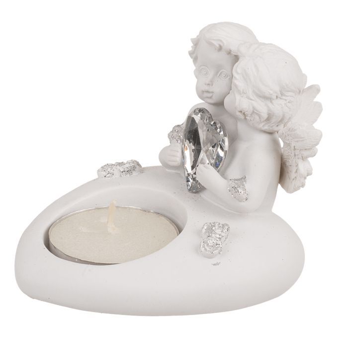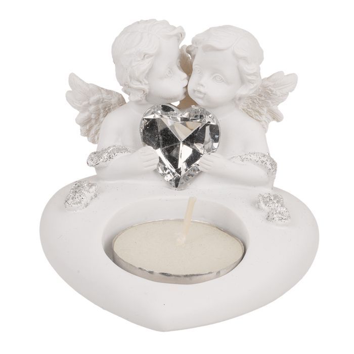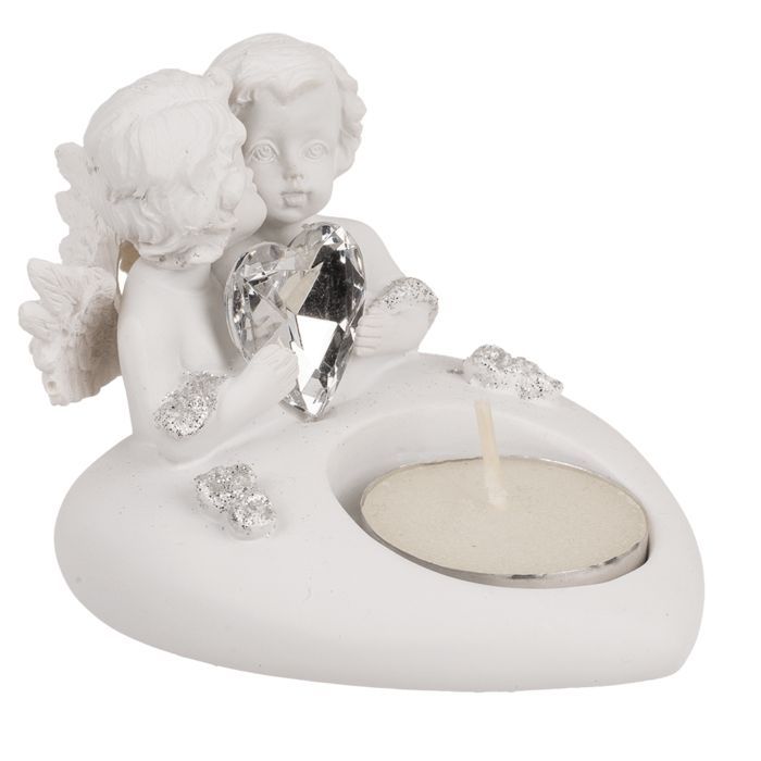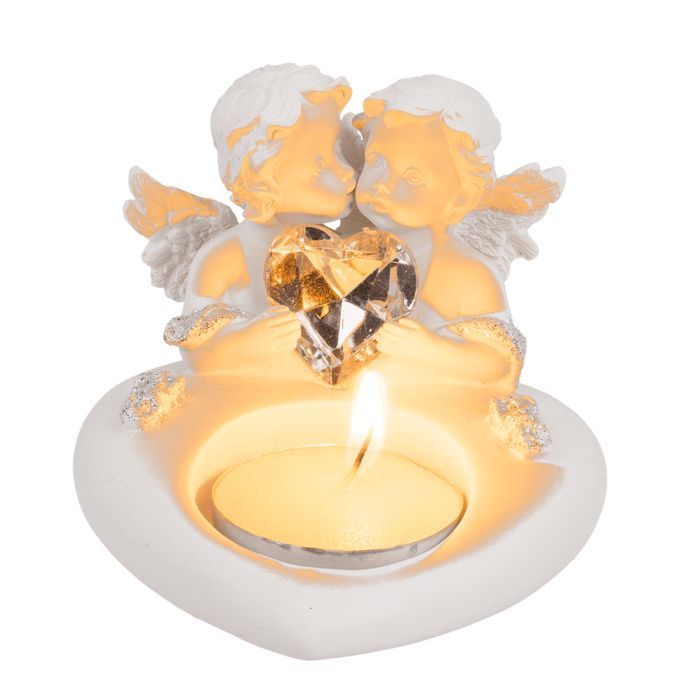 OOTB Herz-Teelichthalter mit Engelpaar & Kristallherz
