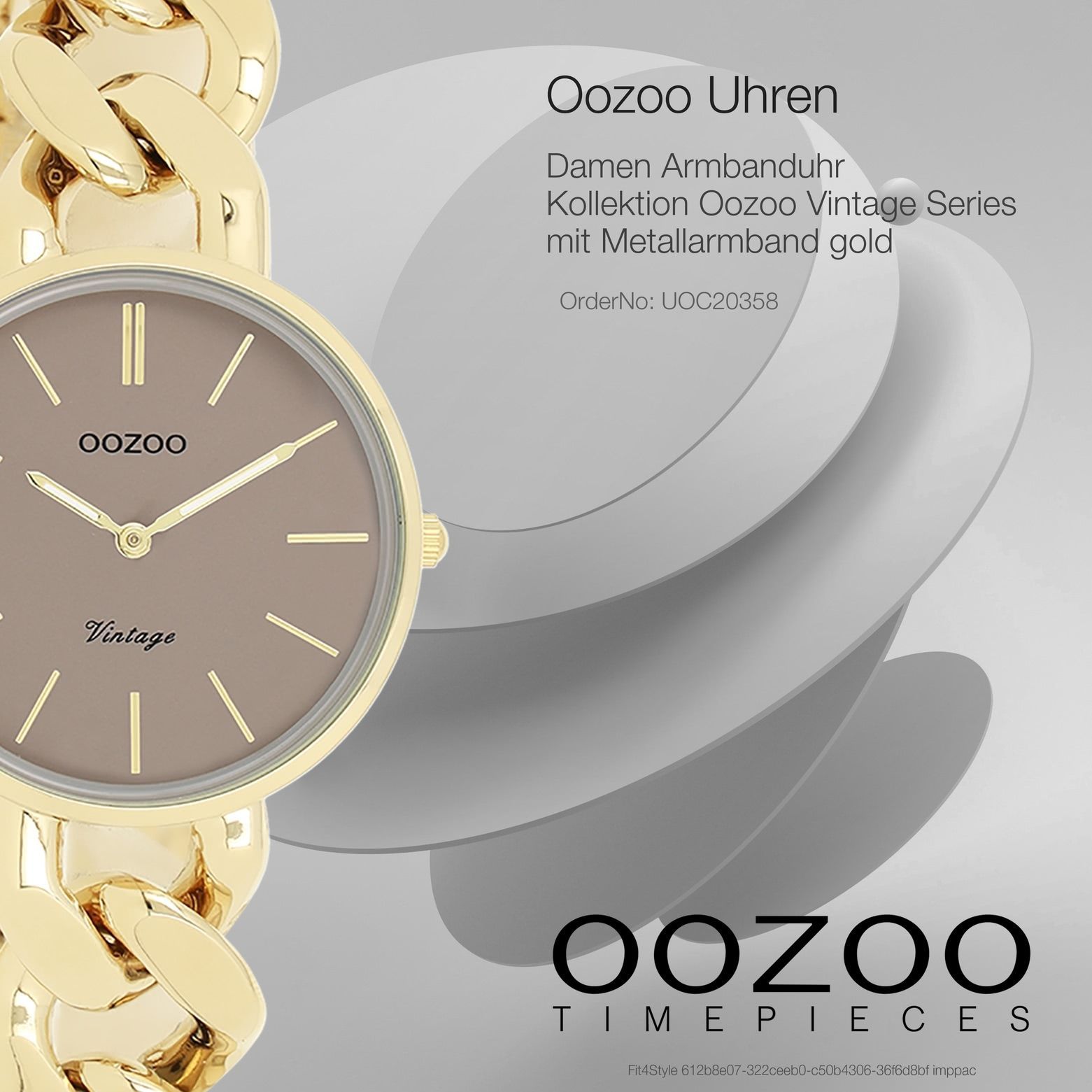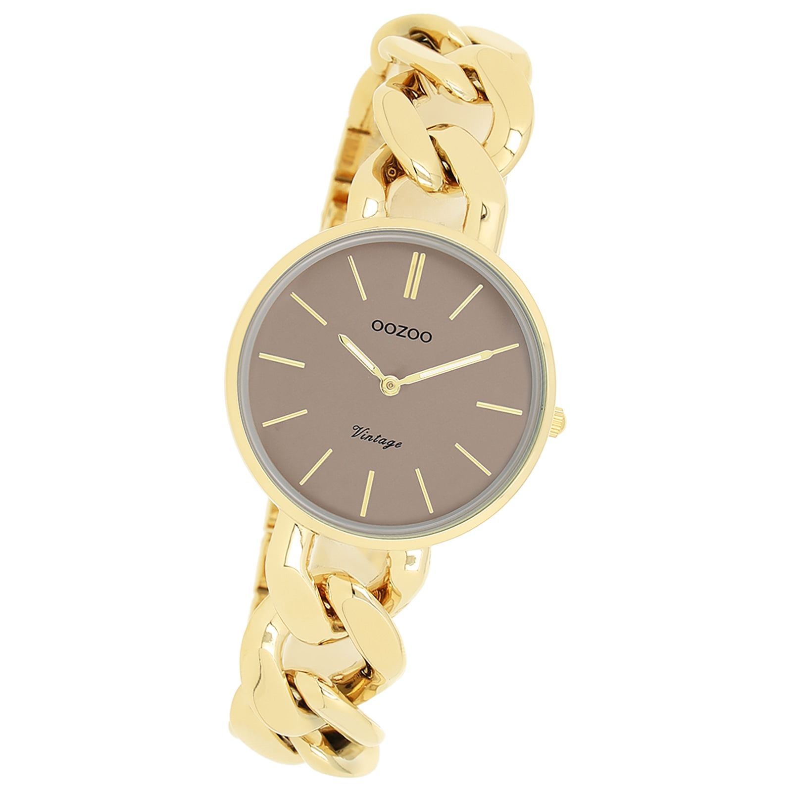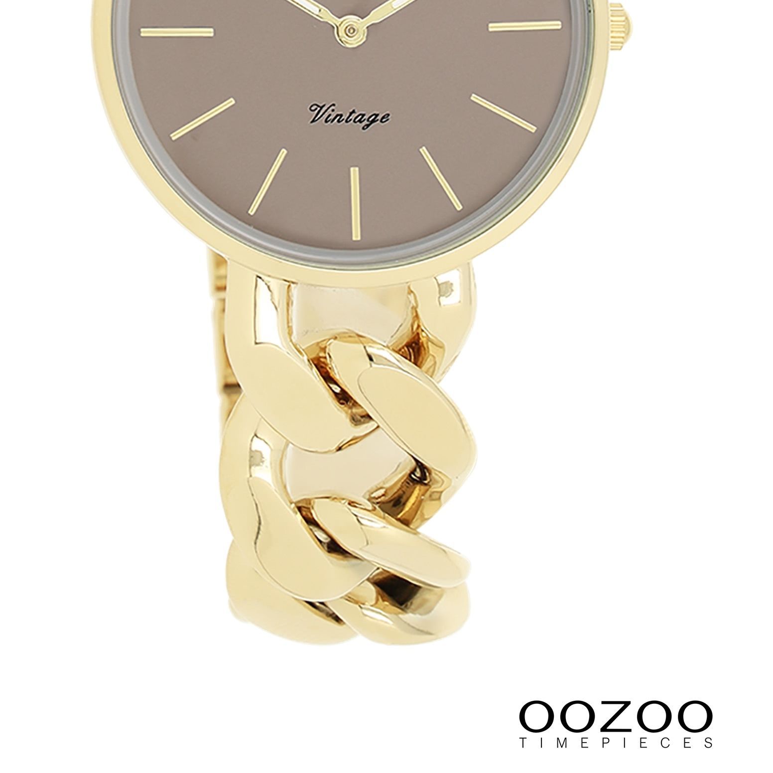 Oozoo Vintage Series Damen Uhr Metall, Edelstahl UOC20358 Diese Fashion Uhr für Damen aus der exklusiven Oozoo Oozoo Vintage Series-Kollektion verfügt über ein hochwertiges Metall-Armband in gold. Das Gehäuse der Uhr ist mittel (ca. 32mm). Das analoge Uhrwerk und das Uhrenglas aus Mineralglas machen