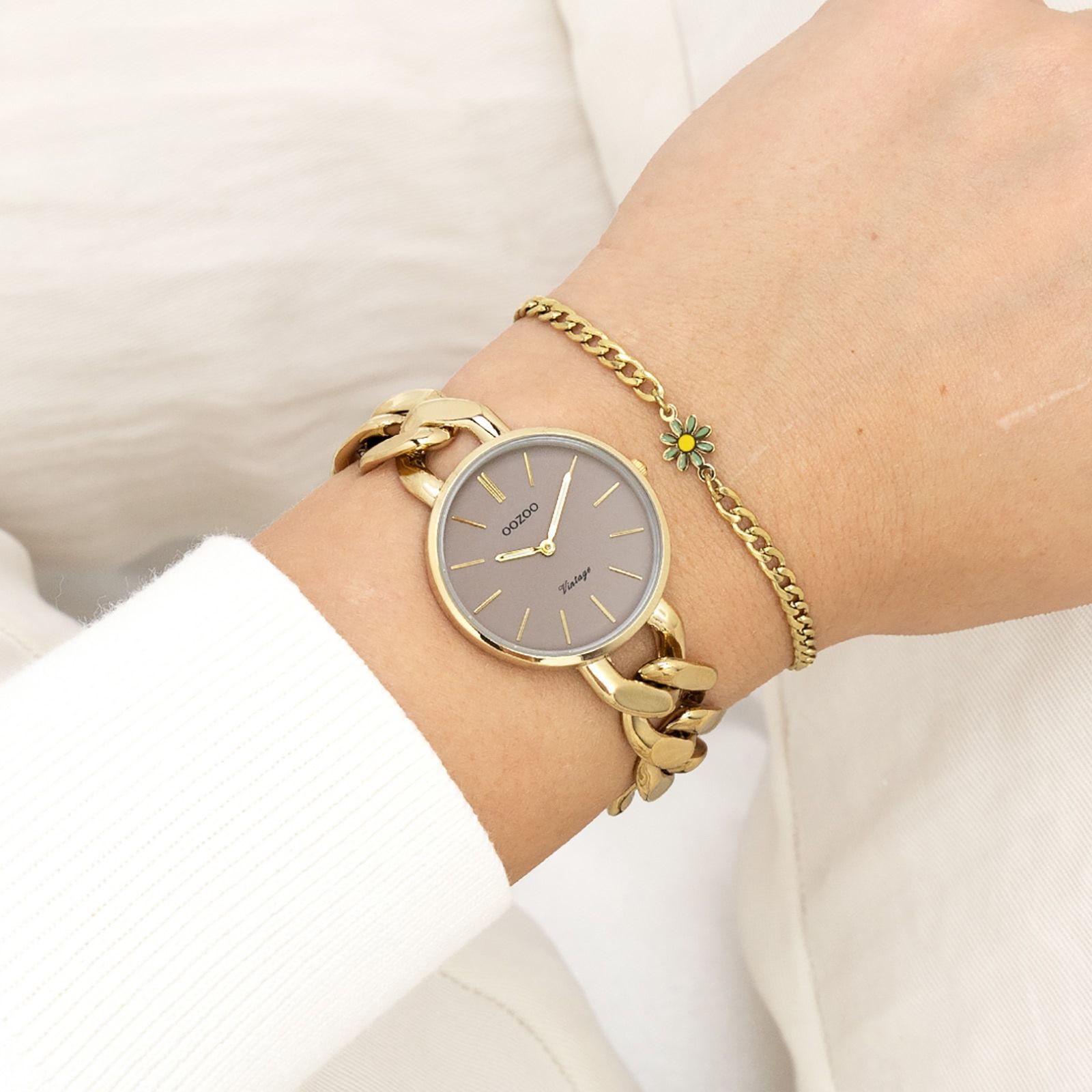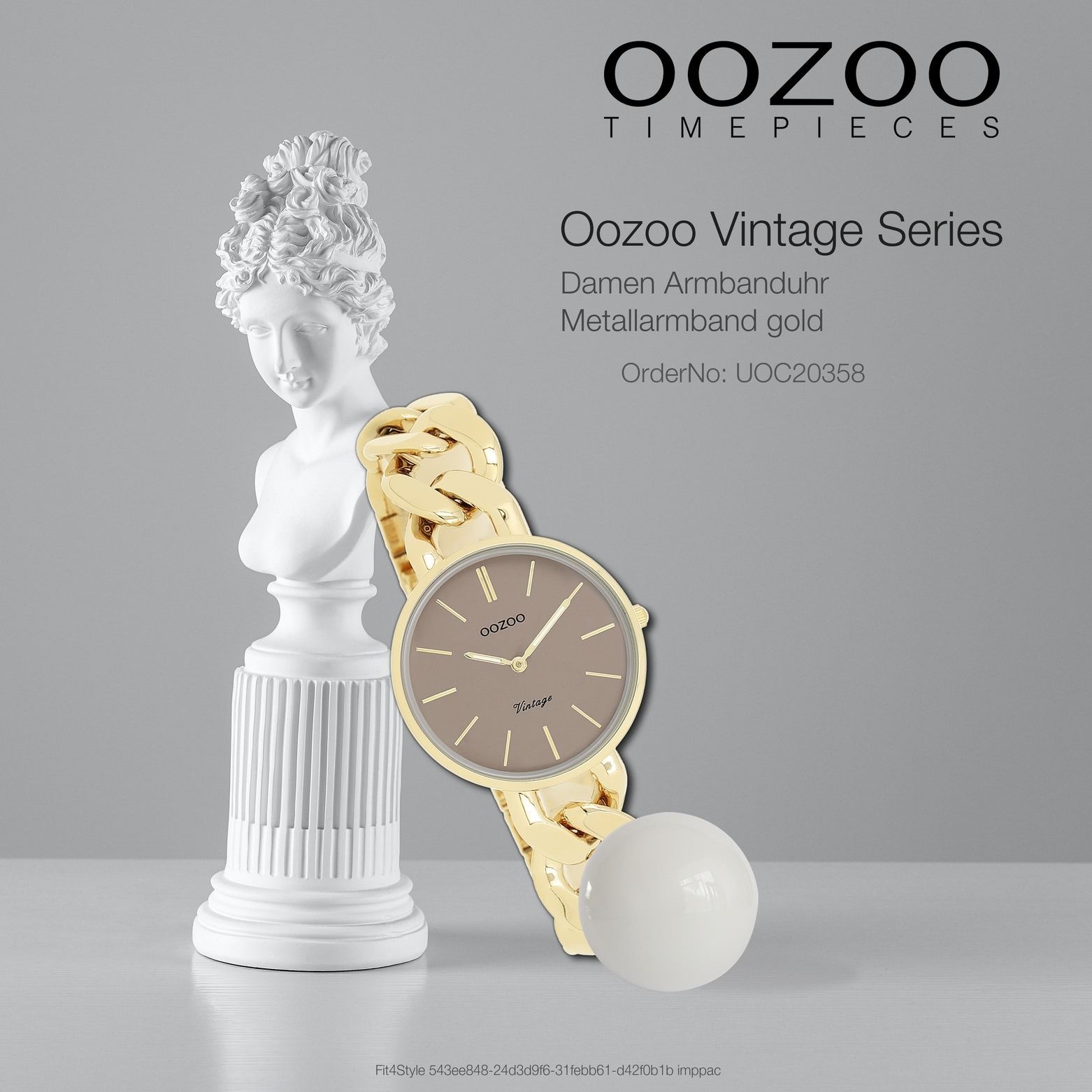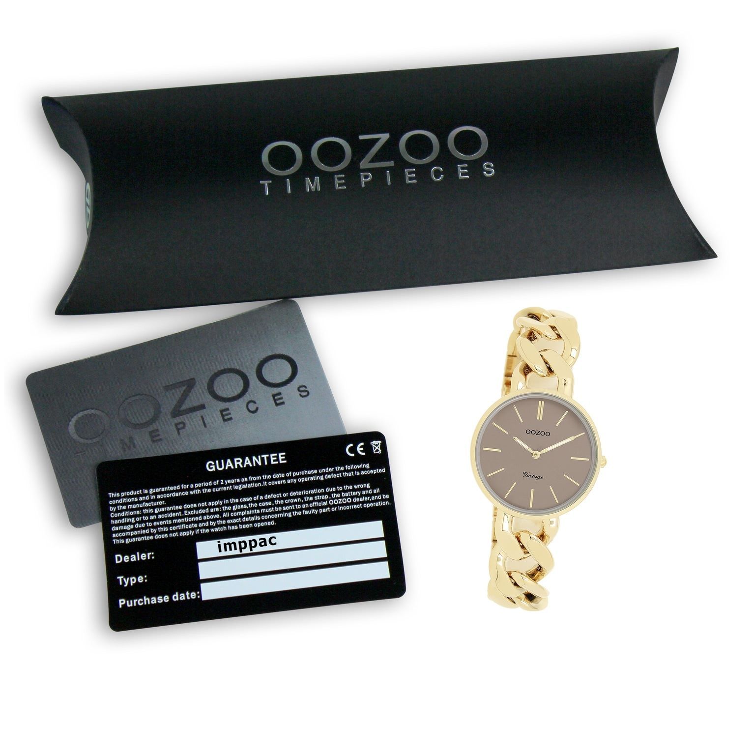 Oozoo Vintage Series Damen Uhr Metall, Edelstahl UOC20358 Diese Fashion Uhr für Damen aus der exklusiven Oozoo Oozoo Vintage Series-Kollektion verfügt über ein hochwertiges Metall-Armband in gold. Das Gehäuse der Uhr ist mittel (ca. 32mm). Das analoge Uhrwerk und das Uhrenglas aus Mineralglas machen