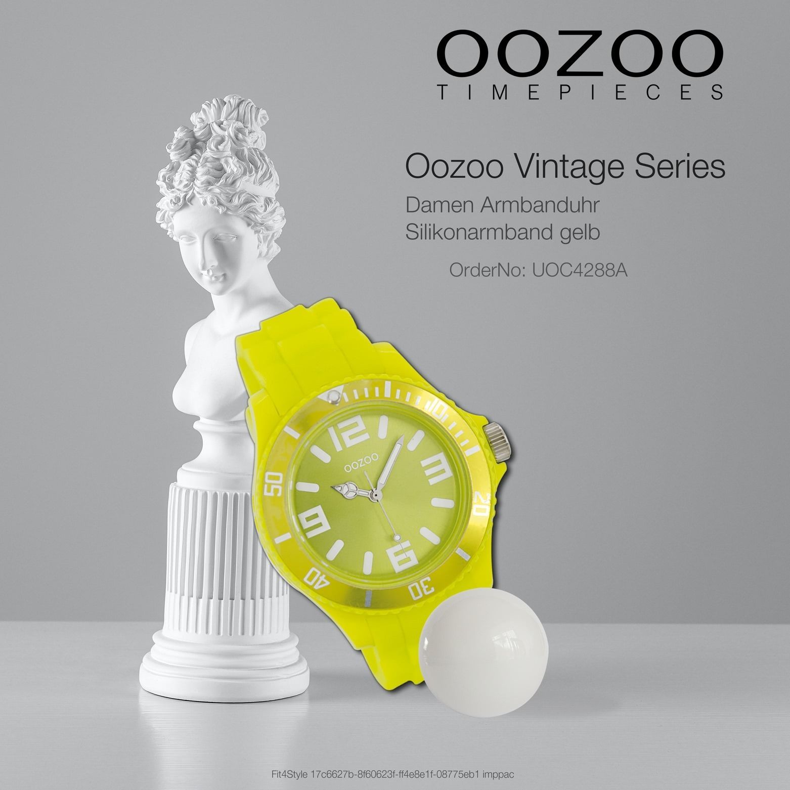 Oozoo Vintage Series Damen, Herren Uhr Metall, Edelstahl UOC4288A Diese Fashion Uhr für Damen und Herren aus der exklusiven Oozoo Oozoo Vintage Series-Kollektion verfügt über ein hochwertiges Silikon-Armband in gelb. Das Gehäuse der Uhr ist groß (ca. 43mm). Das analoge Uhrwerk und das Uhrenglas aus