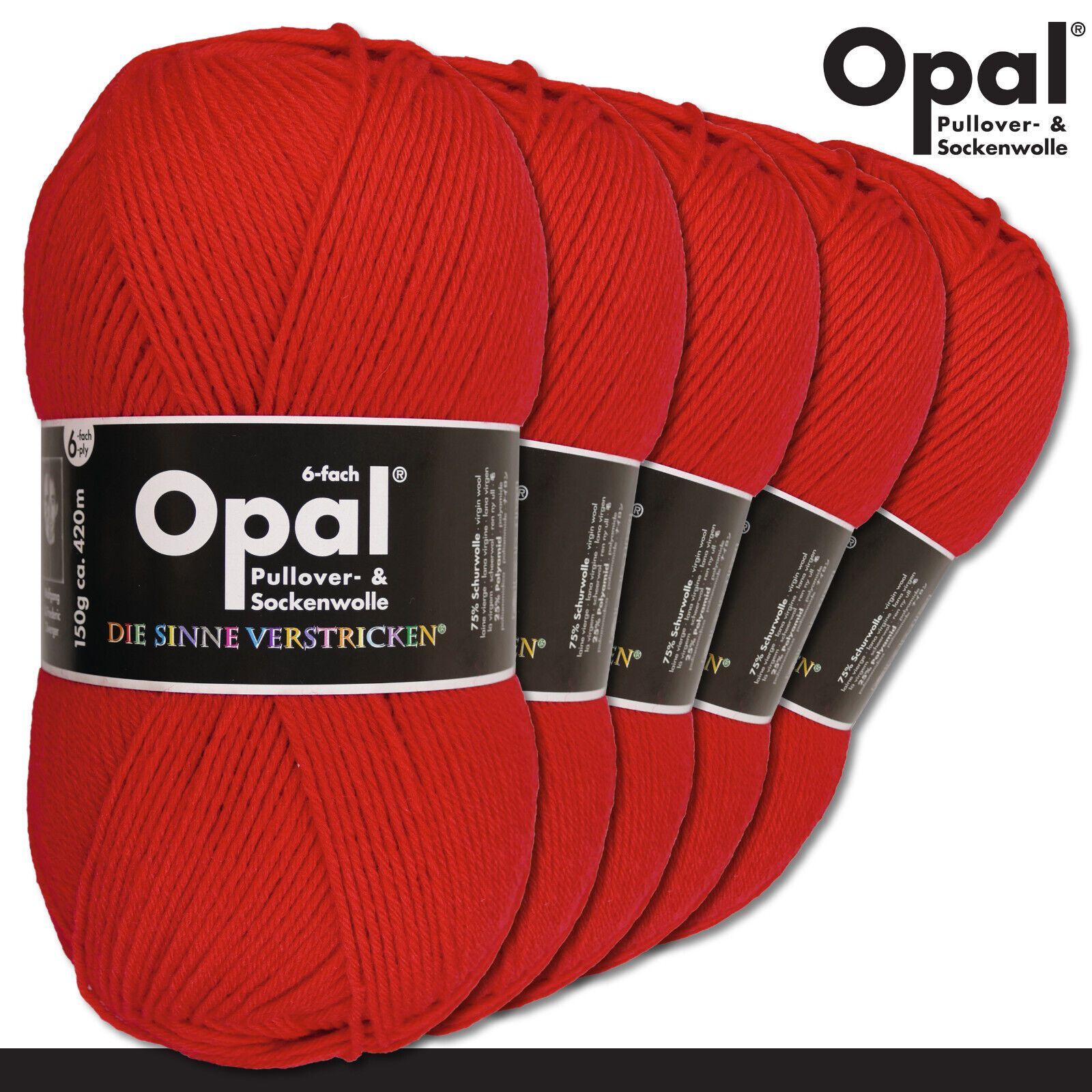 Opal 5 x 150 g Uni 6-fach Sockenwolle Strümpfe Stricken Einfarbig 9 Farben