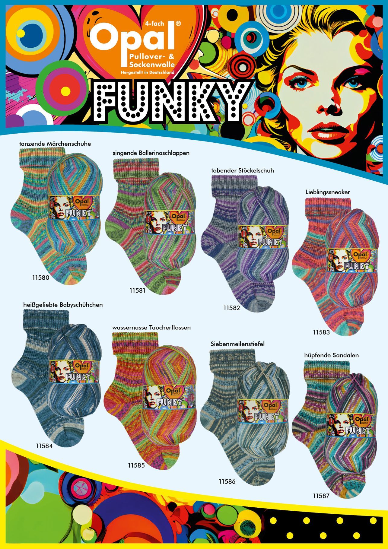 Strapazierfähige Wolle mit frechem Farbdesign - Lebe bunt, strick FUNKY – Opal 4-fach Socken- & Pulloverwolle mit Charakter Farben, die tanzen – Designs, die inspirieren Mit der Opal Funky 4-fach Pullover- und Sockenwolle bringst Du nicht nur Farbe, sondern auch Lebensfreude in Dein Strickprojek