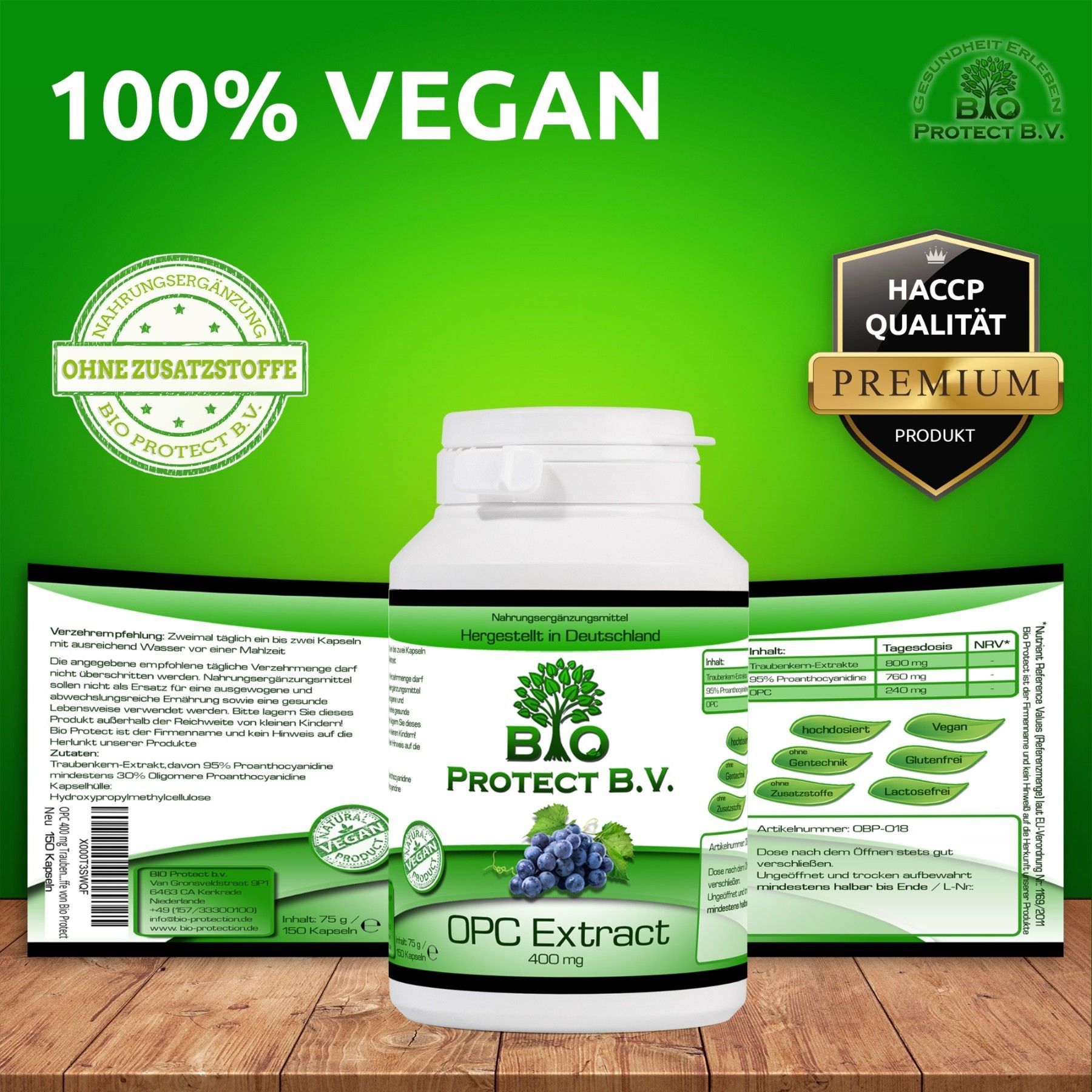 OPC 400mg 150 Kapseln Traubenkernextrakt mit mindestens 30% reinem OPC