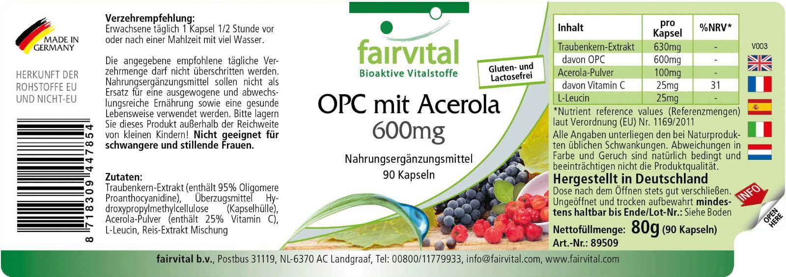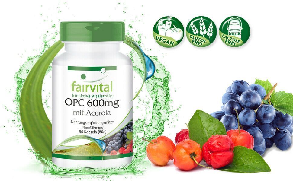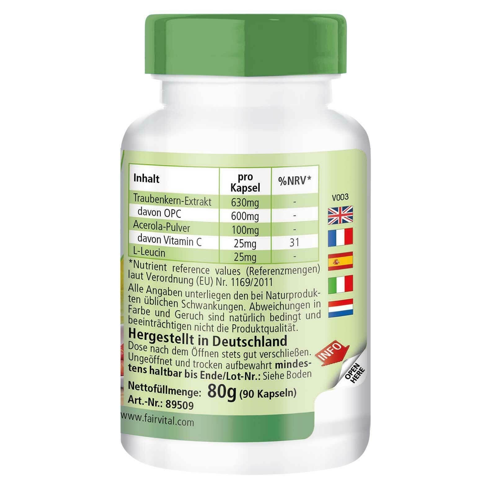 fairvital OPC 600mg mit Acerola 90 Kapseln, Traubenkern-Extrakt - fairvital