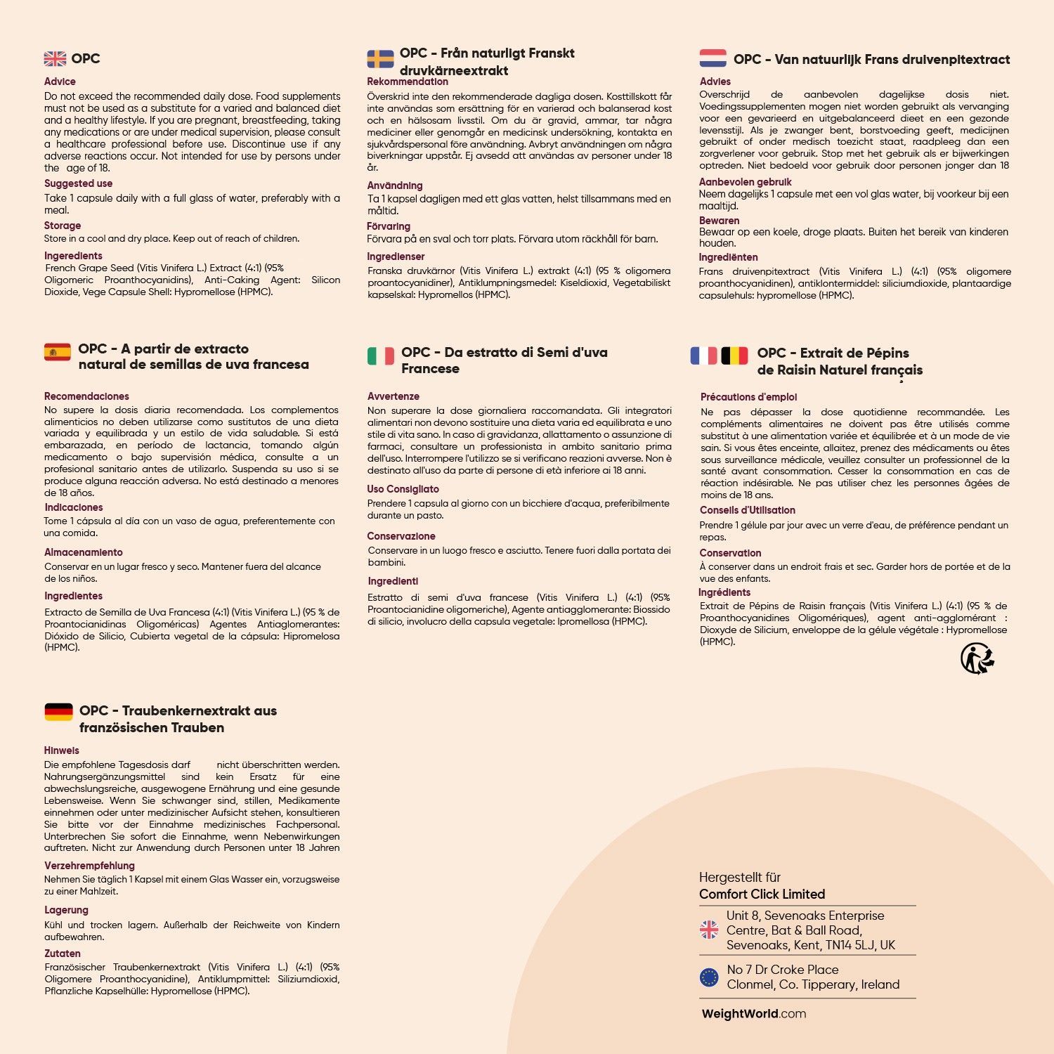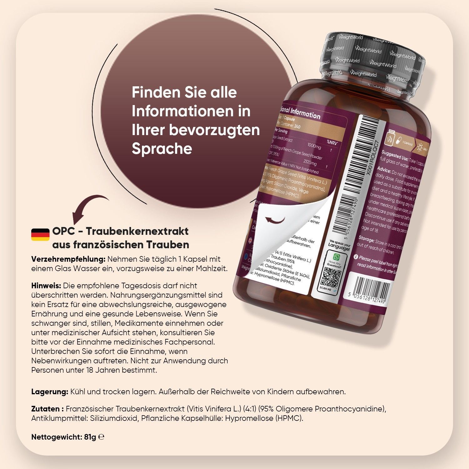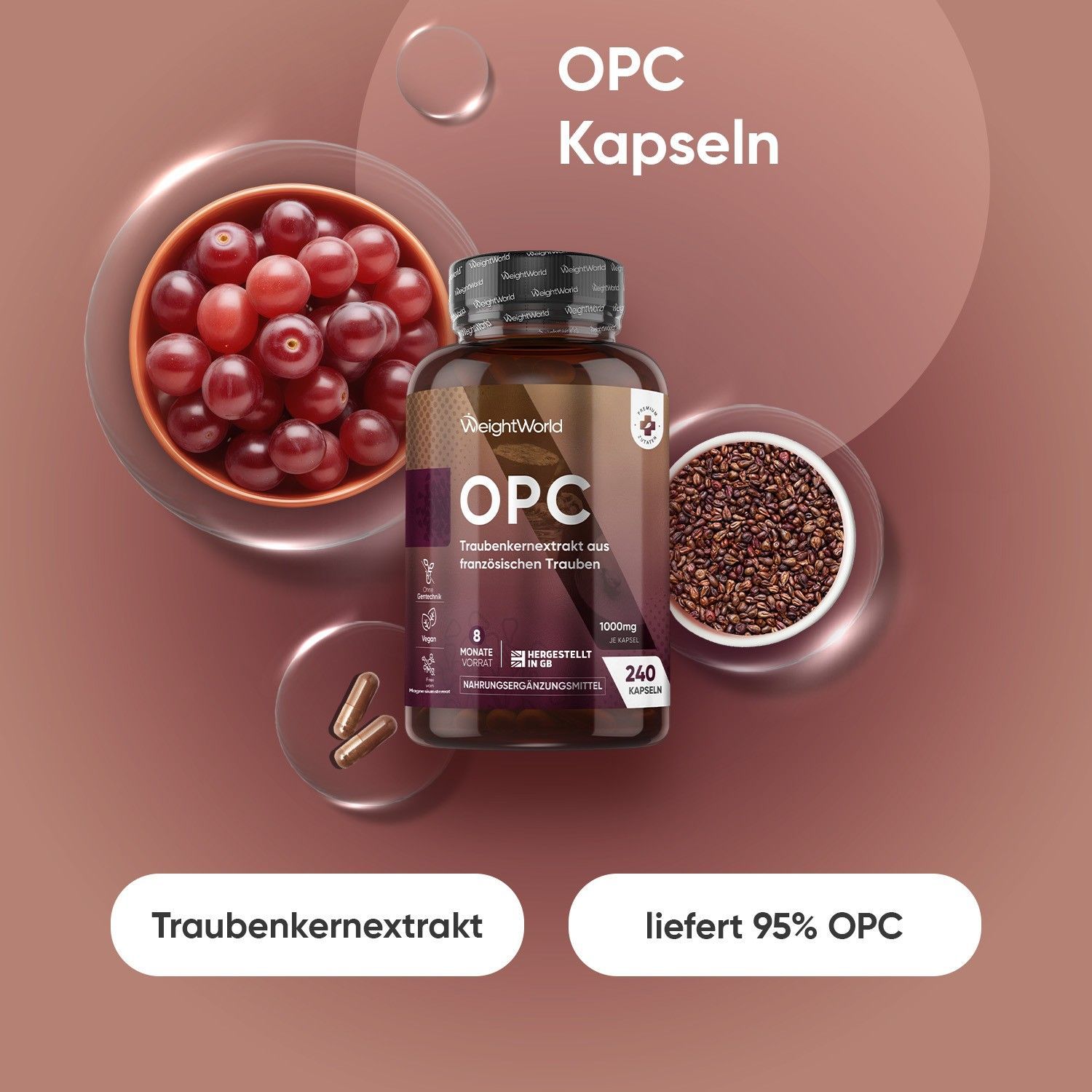 OPC Traubenkernextrakt - 240 Stücke - 8 Monate Vorrat - 95% reines OPC - WeightWorld