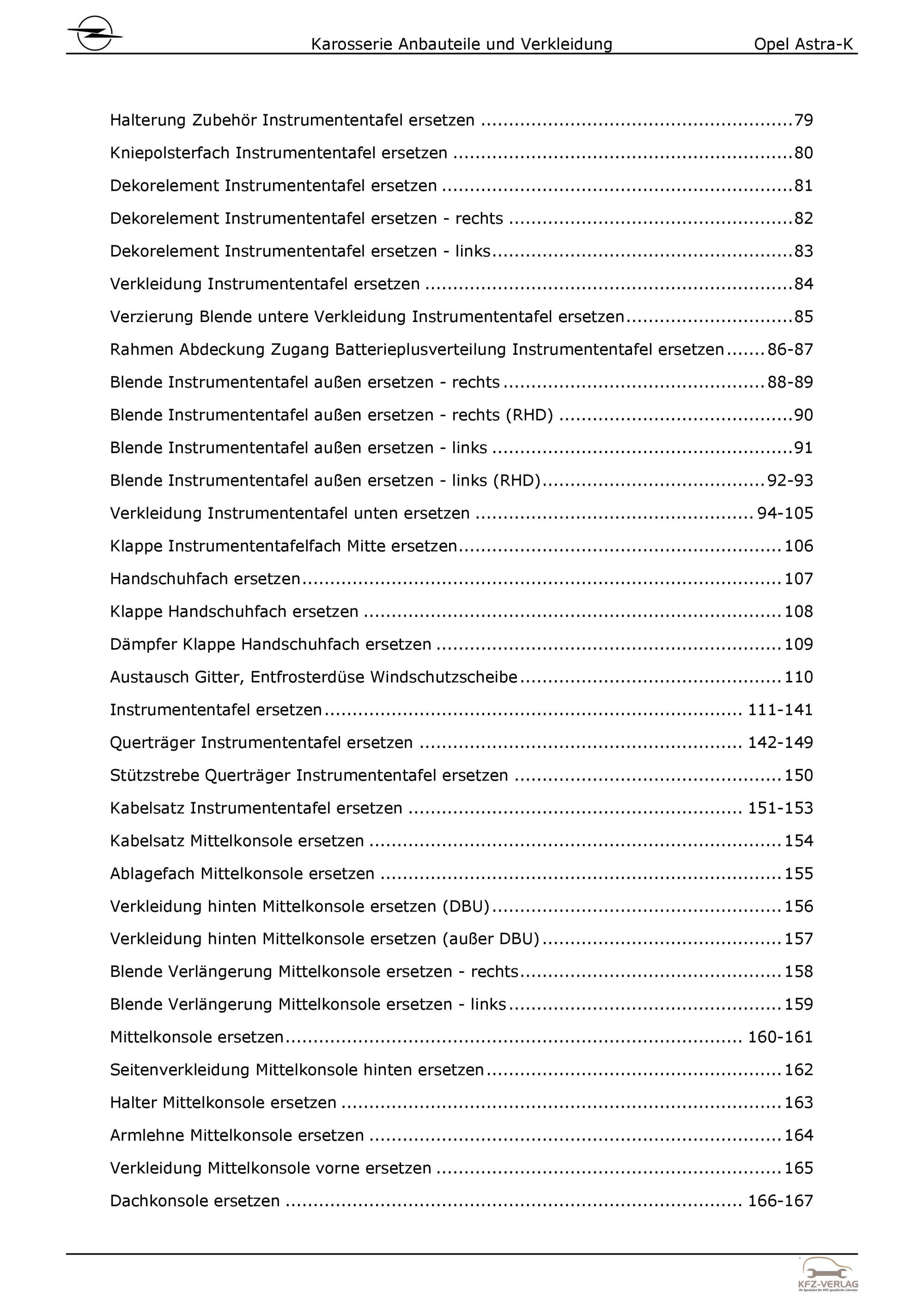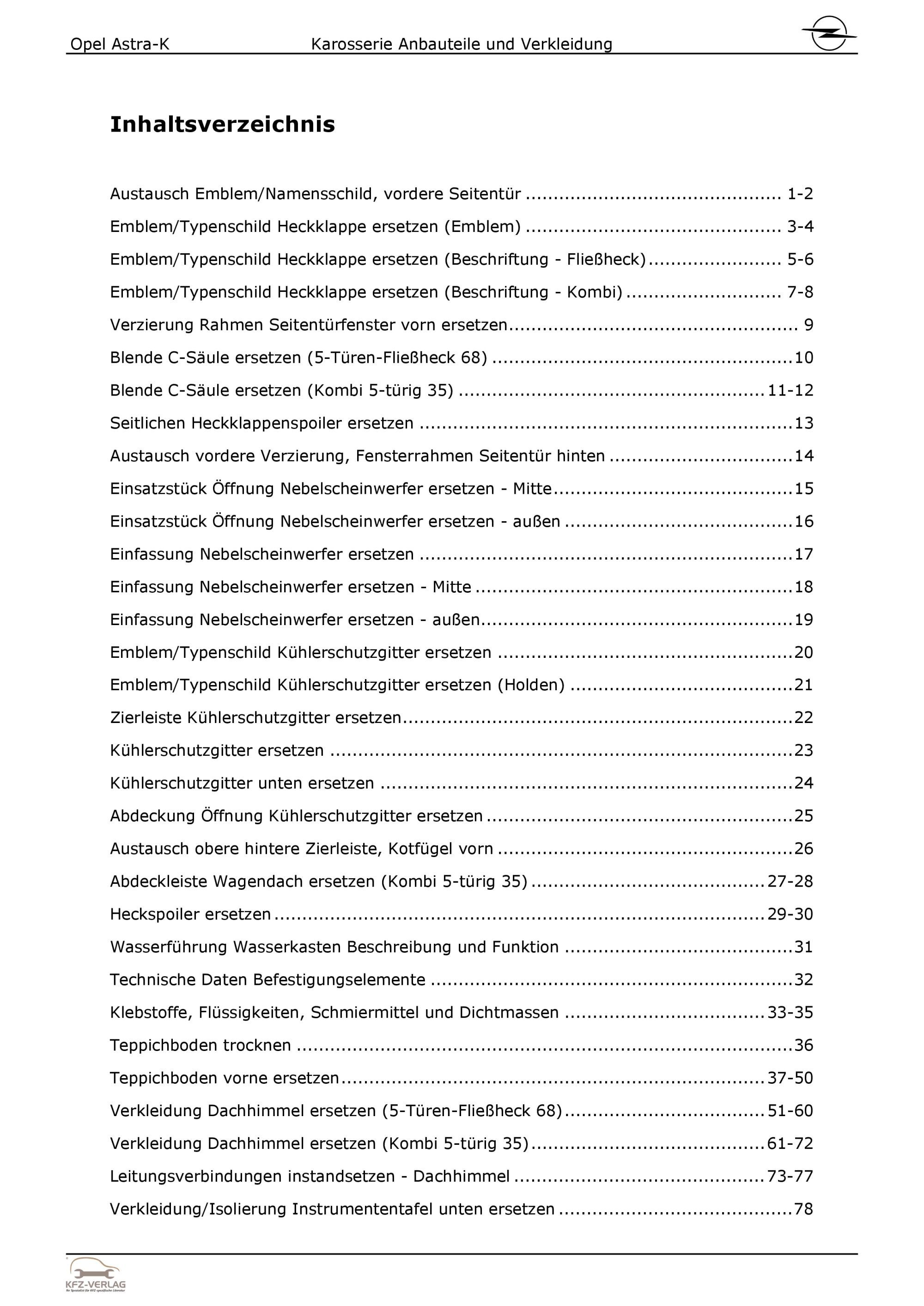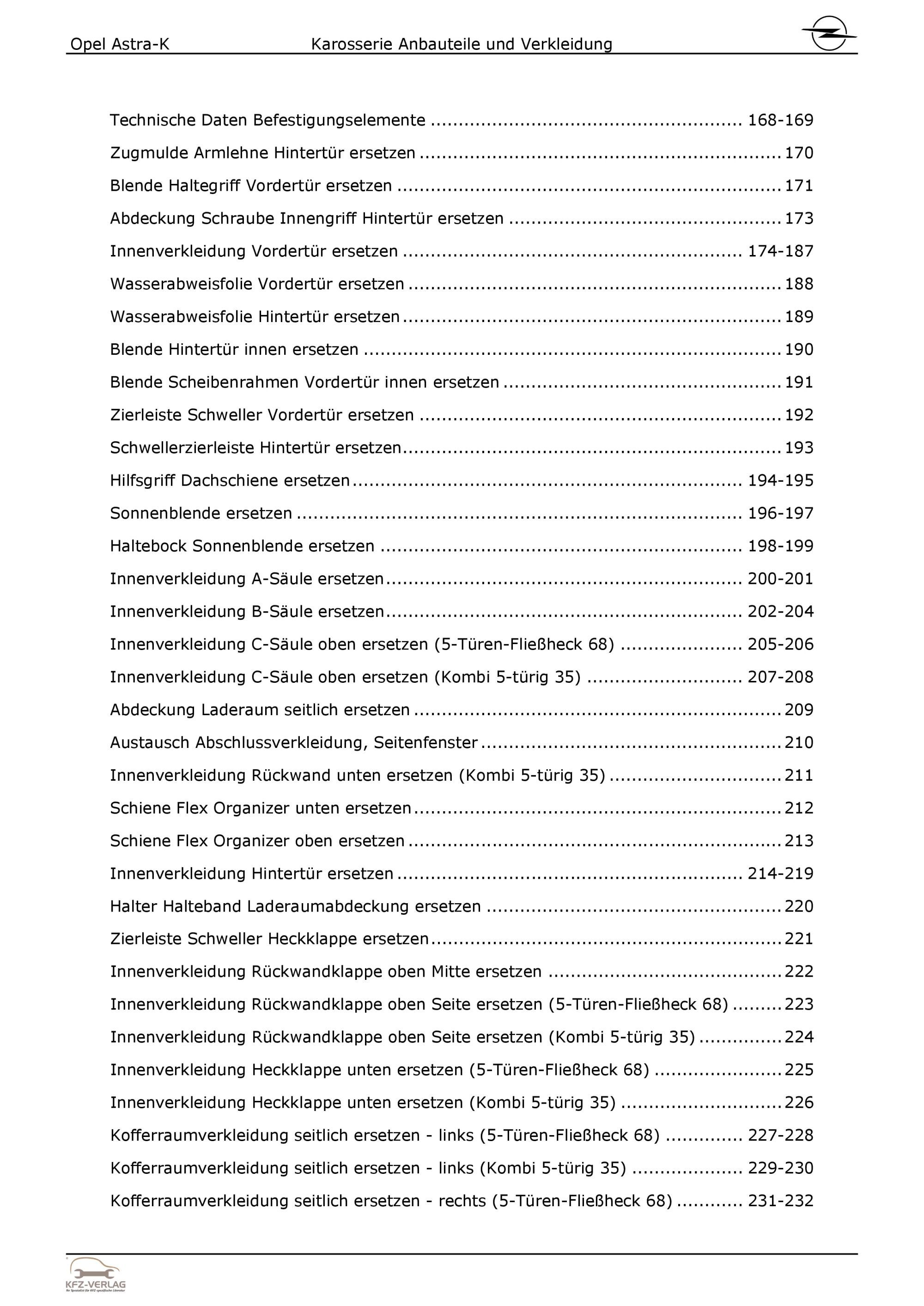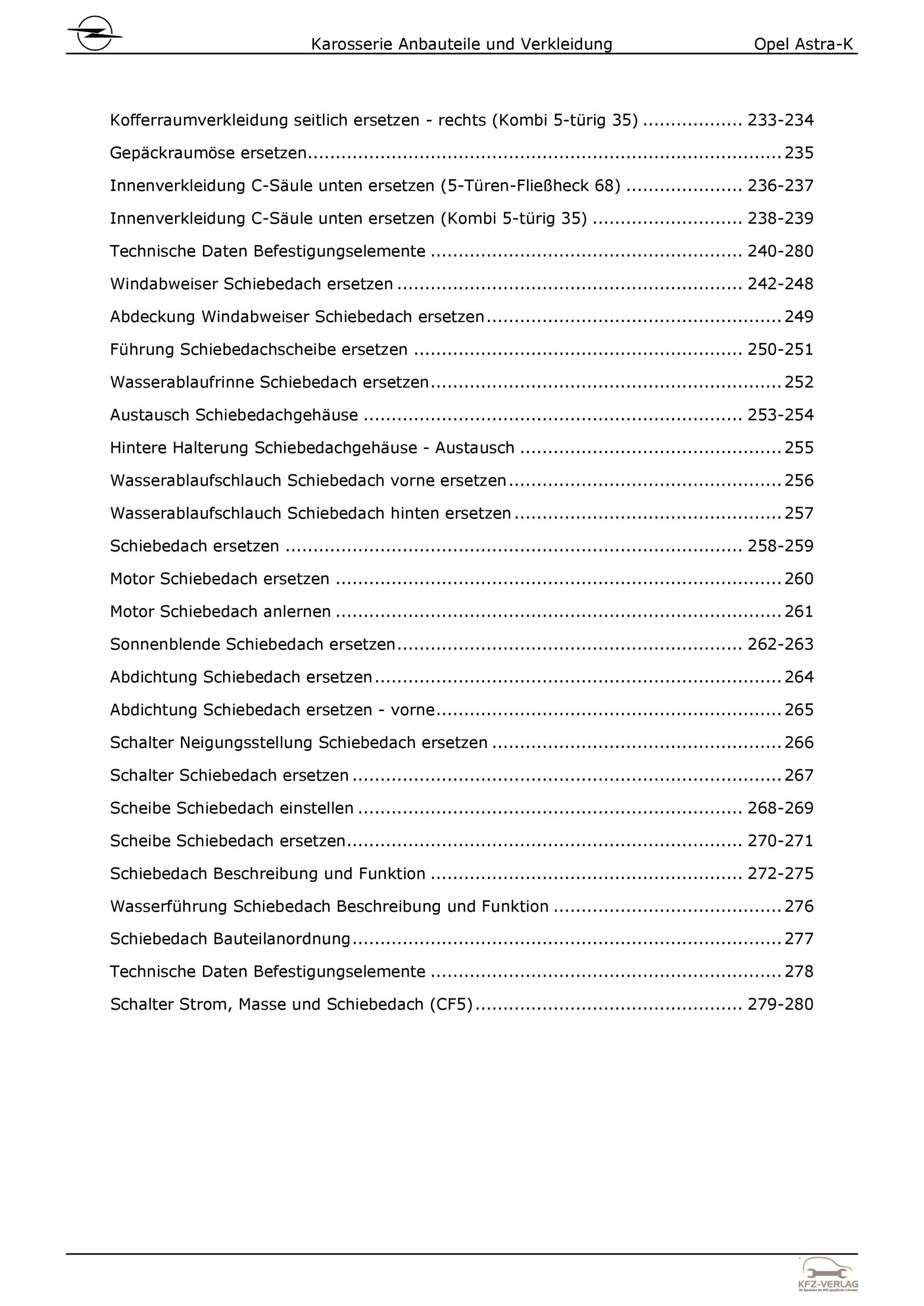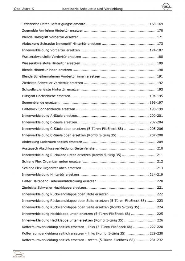 Opel Astra K B16 2015-2021 Karosserie Anbauteile Verkleidung Reparaturanleitung