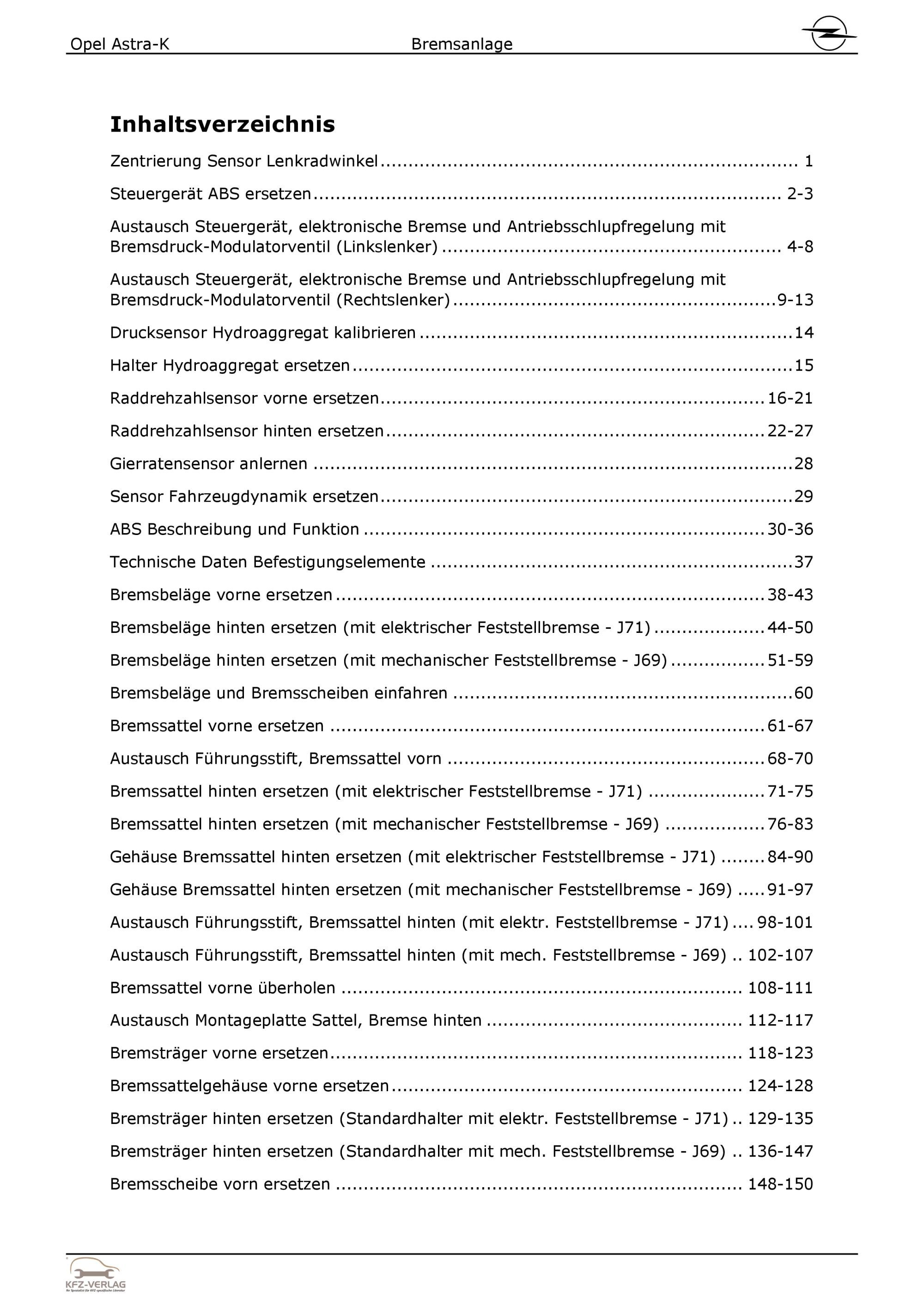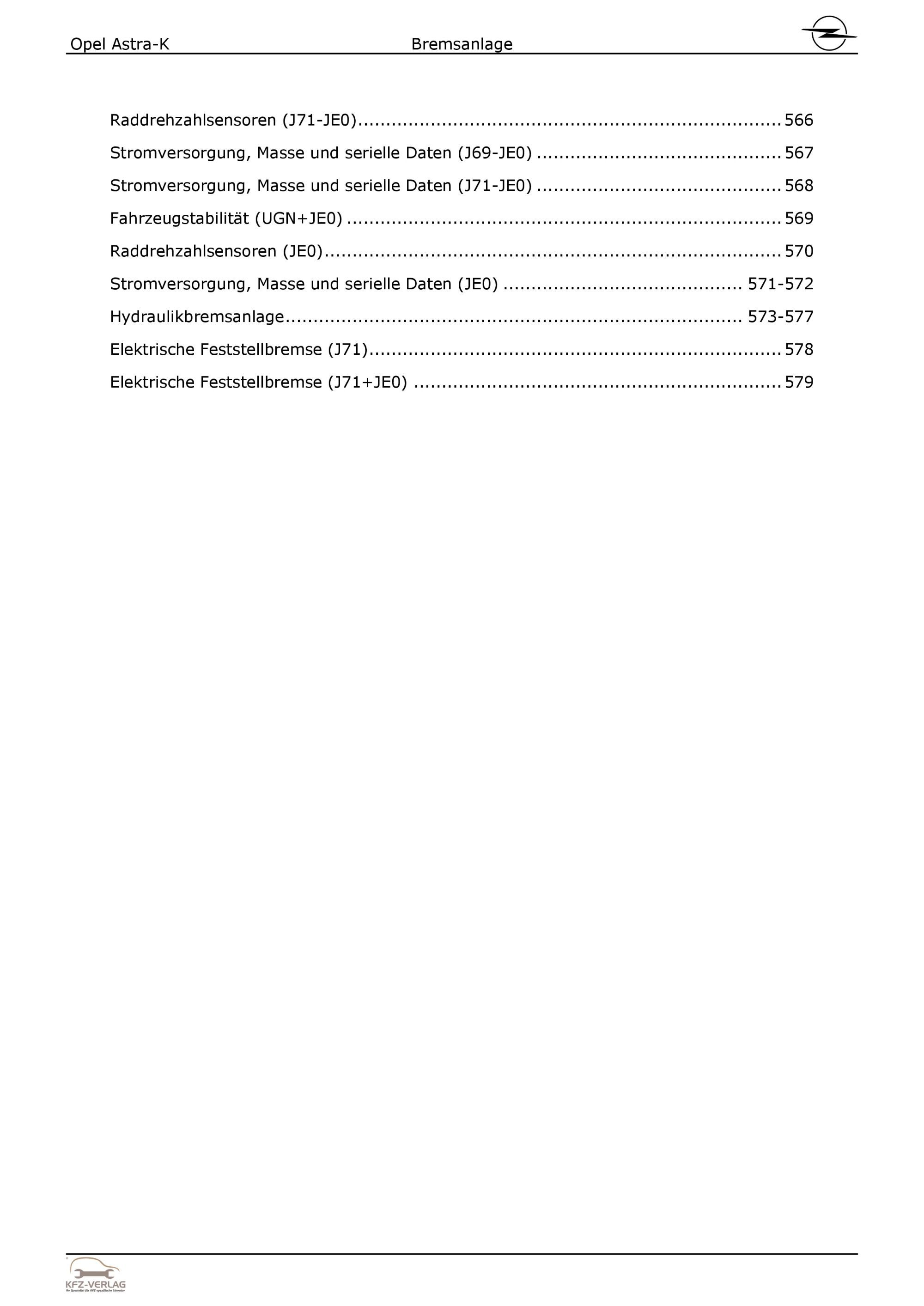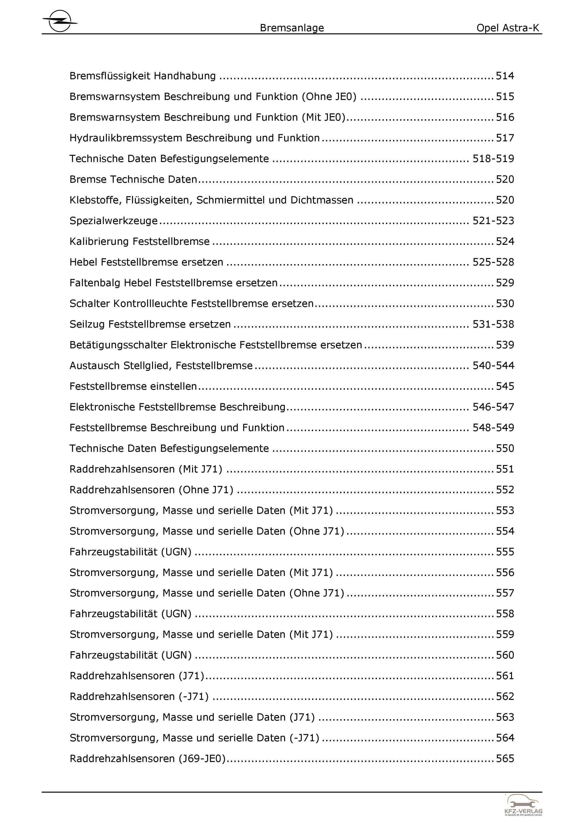 Opel Astra K Typ B16 2015-2021 Bremsanlagen Bremsen System Reparaturanleitung