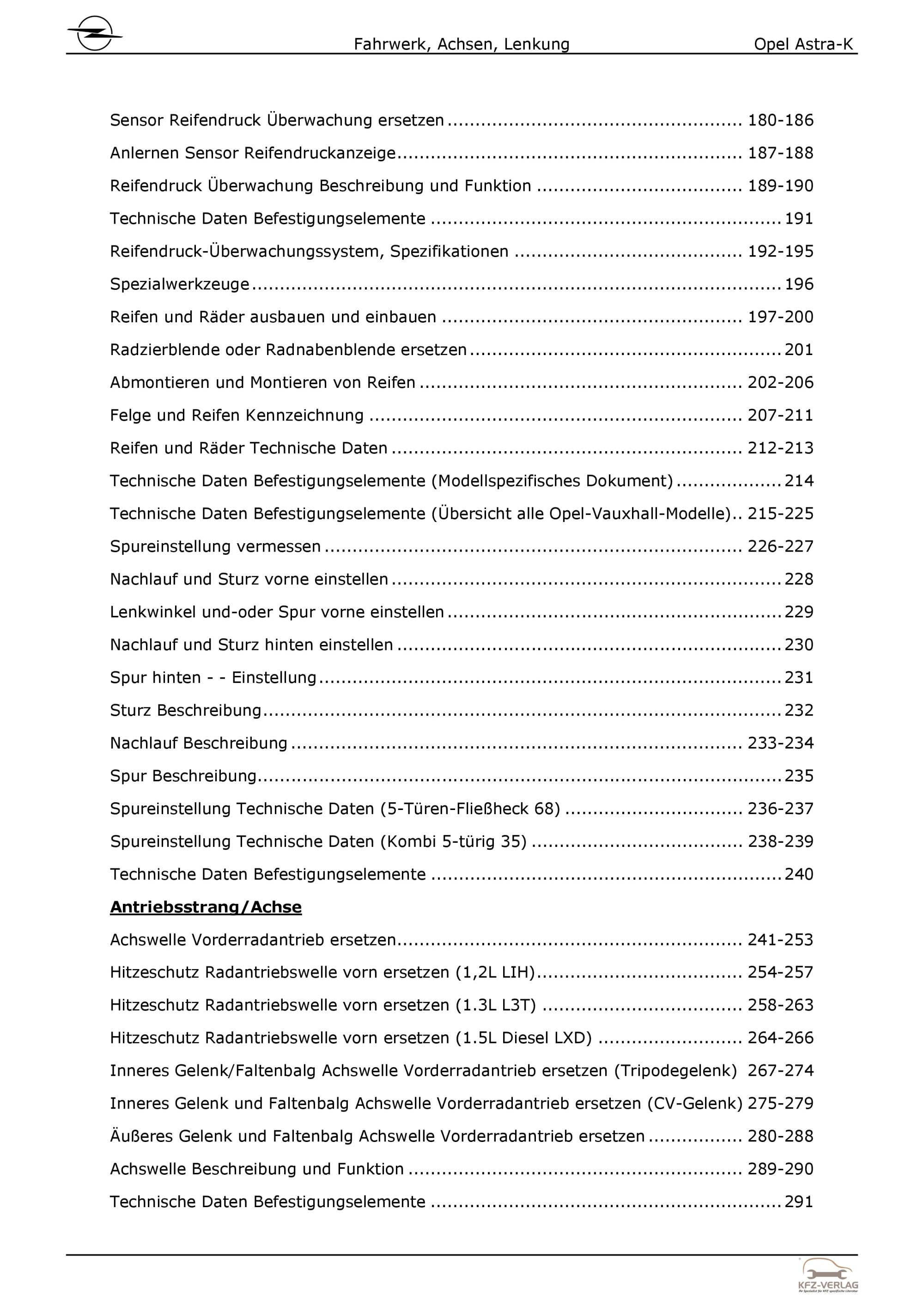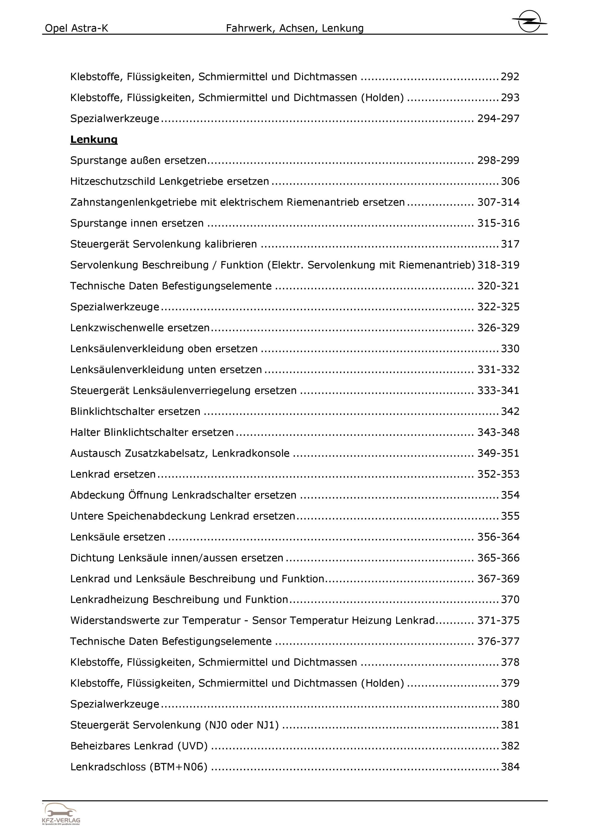 Opel Astra K Typ B16 2015-2021 Fahrwerk Achsen Lenkung Reparaturanleitung Buch
