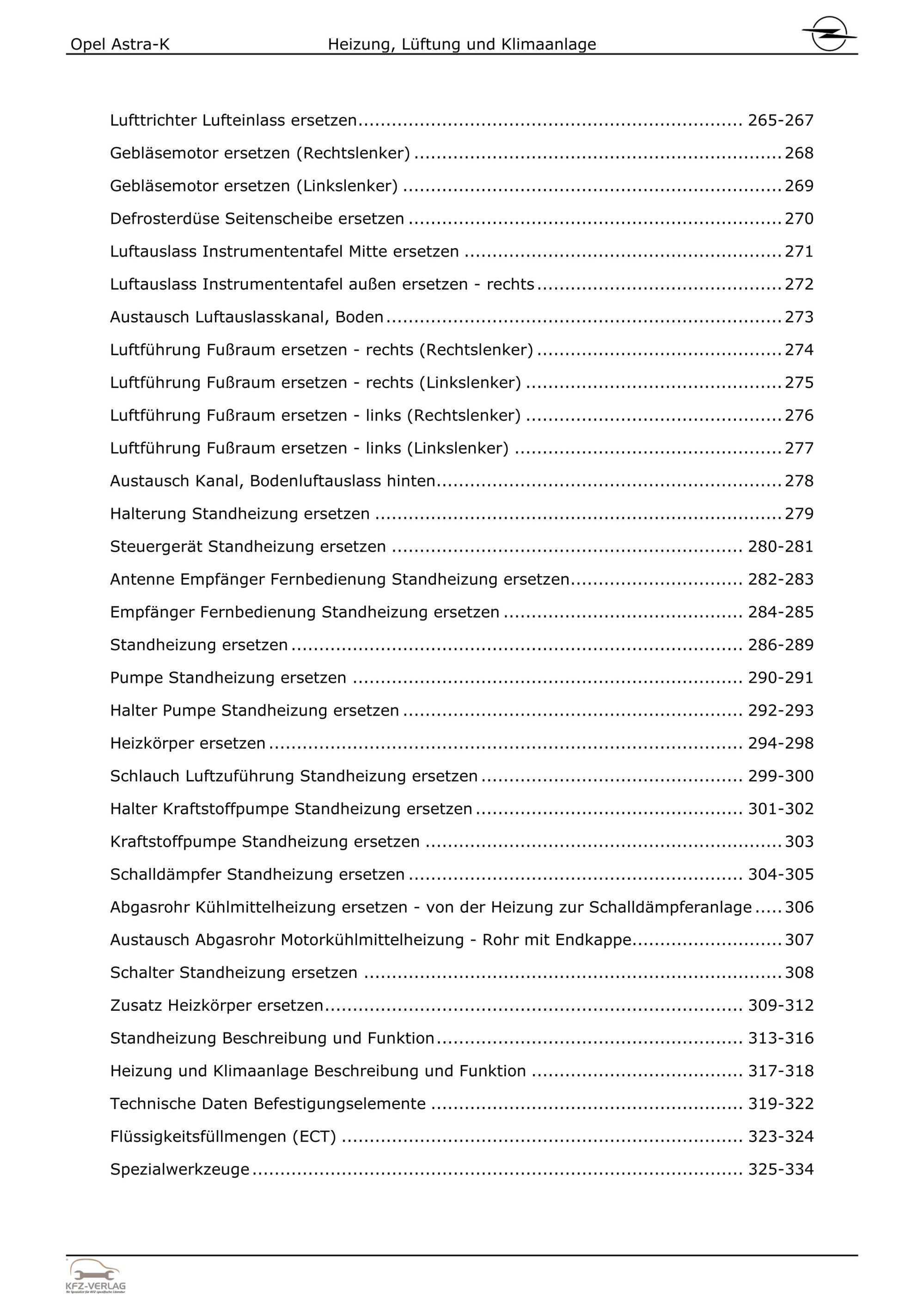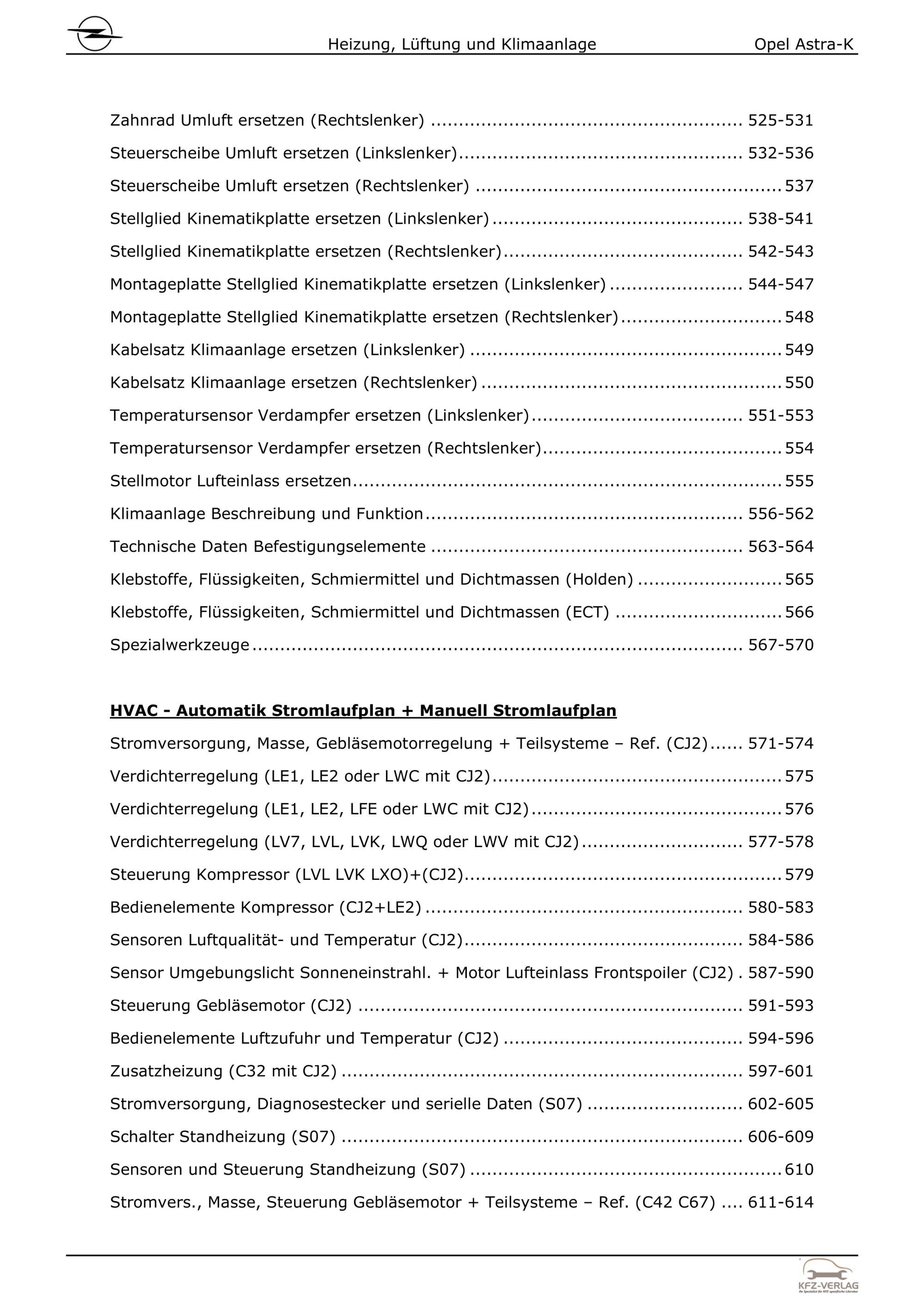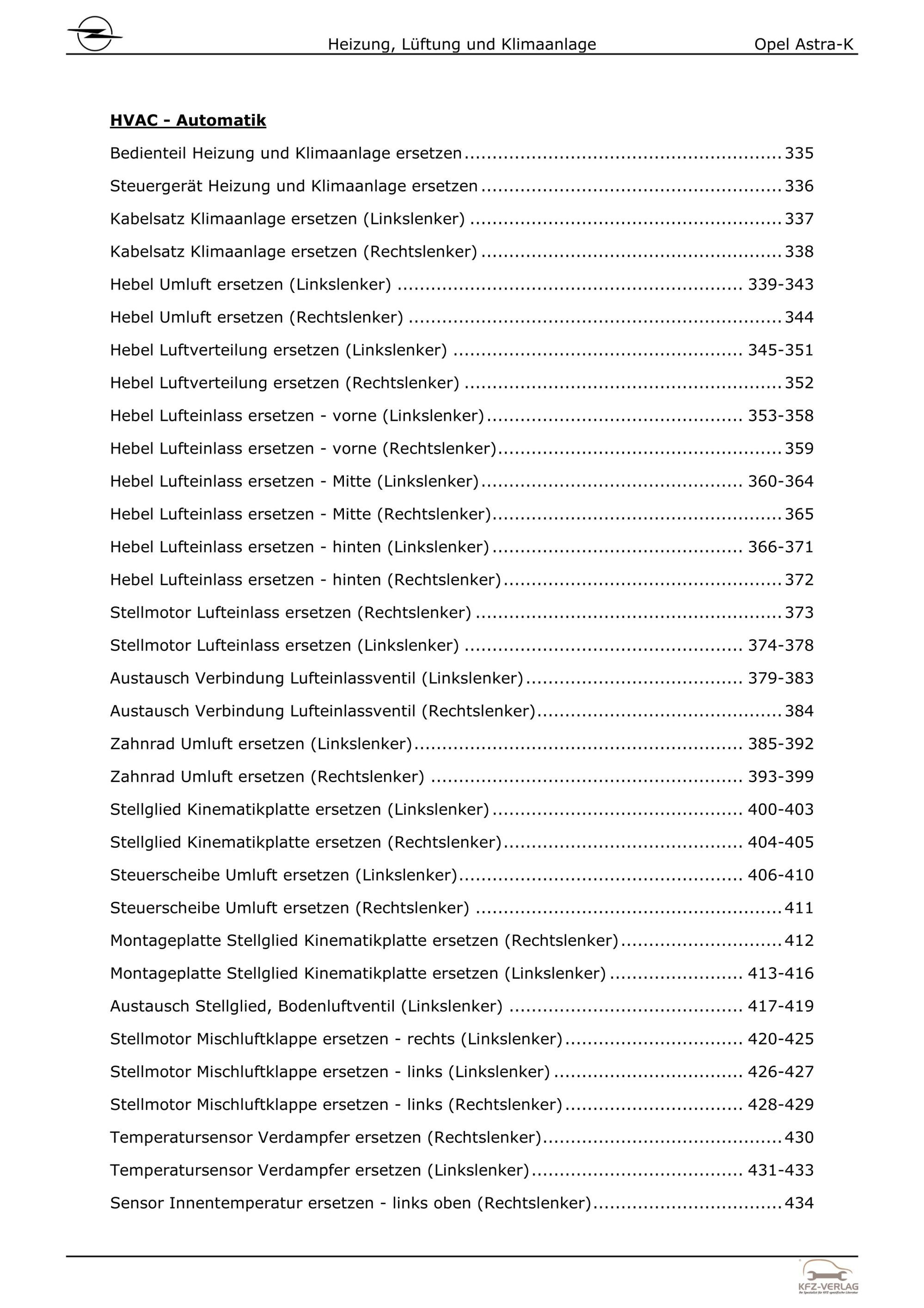 Opel Astra K Typ B16 2015-2021 Heizung Lüftung Klimaanlage Reparaturanleitung