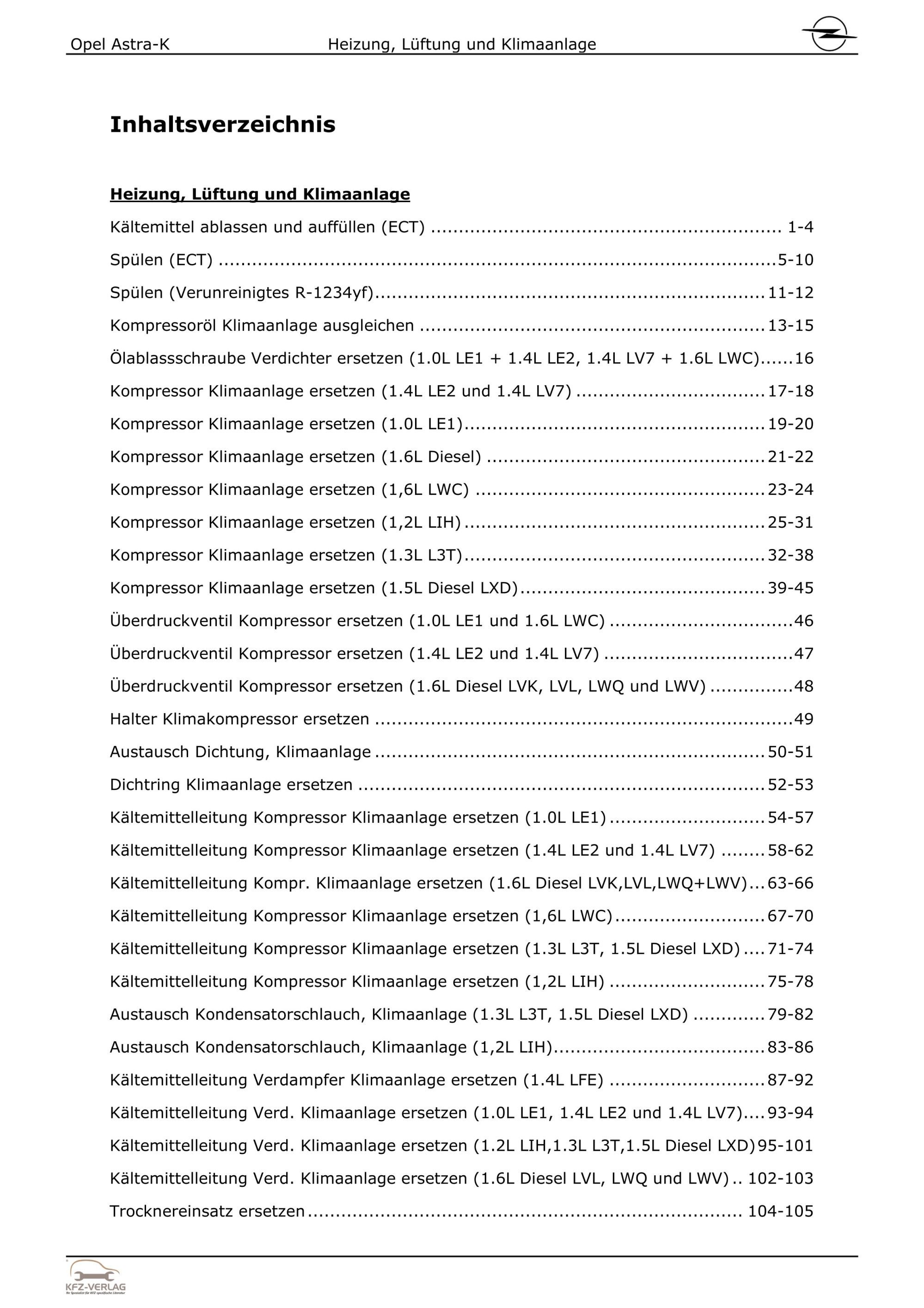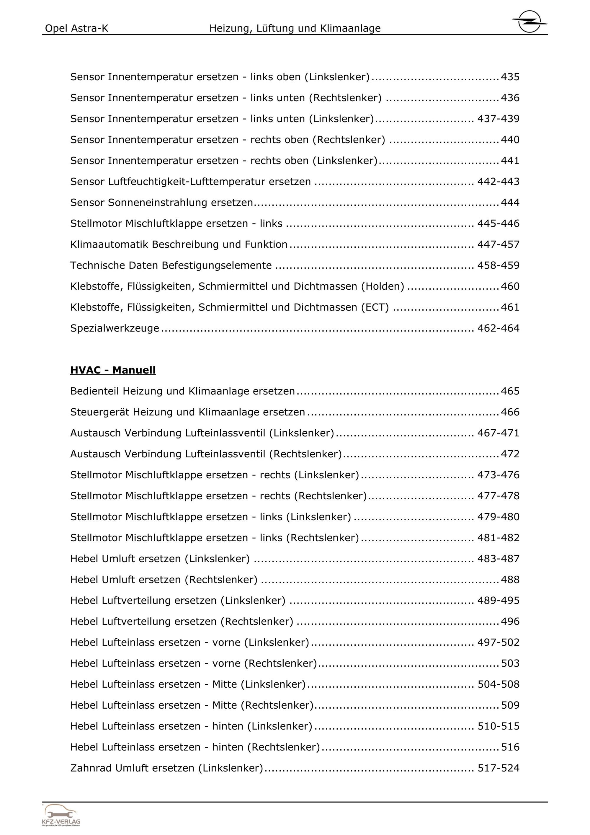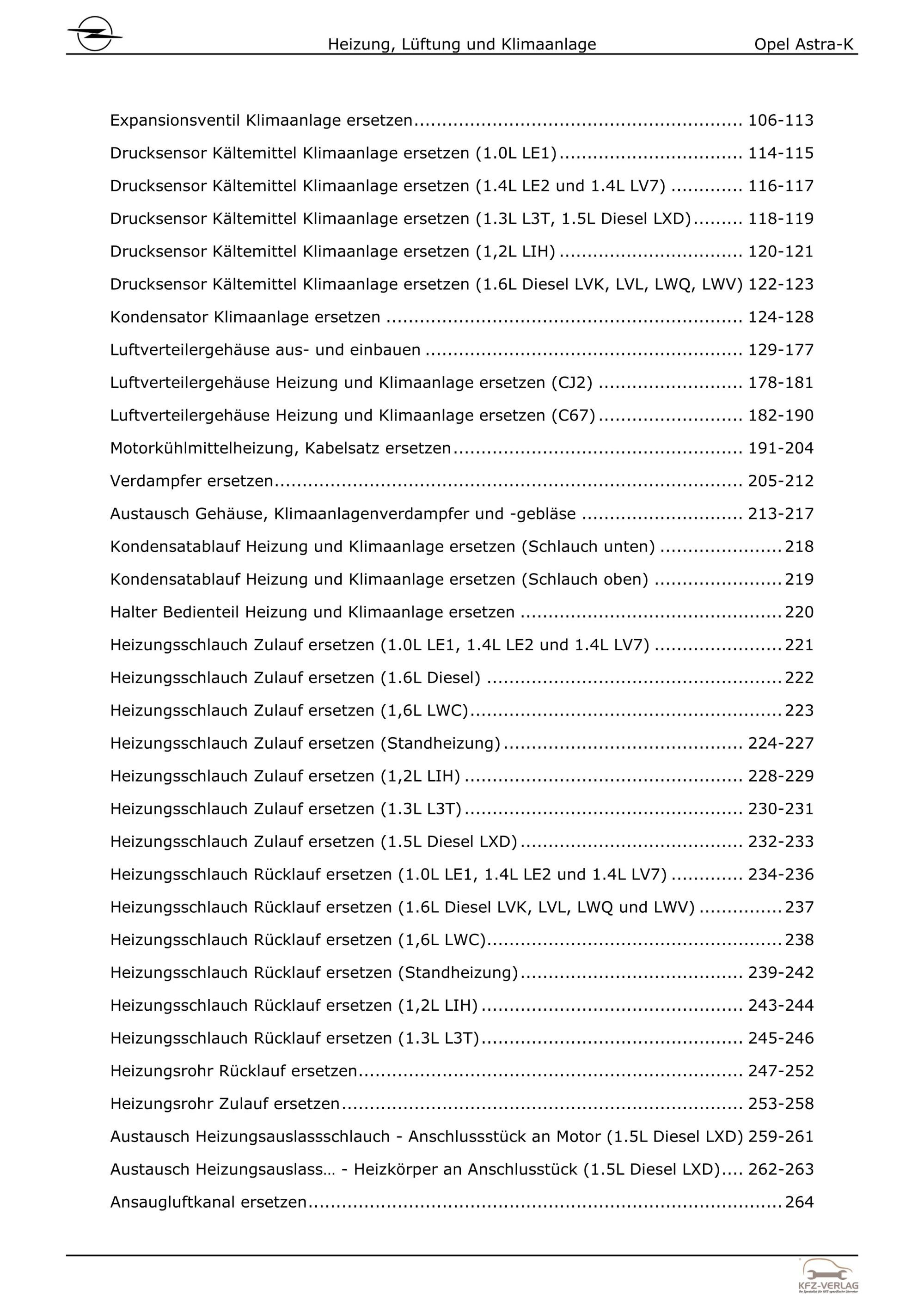 Opel Astra K Typ B16 2015-2021 Heizung Lüftung Klimaanlage Reparaturanleitung