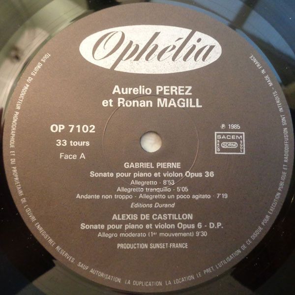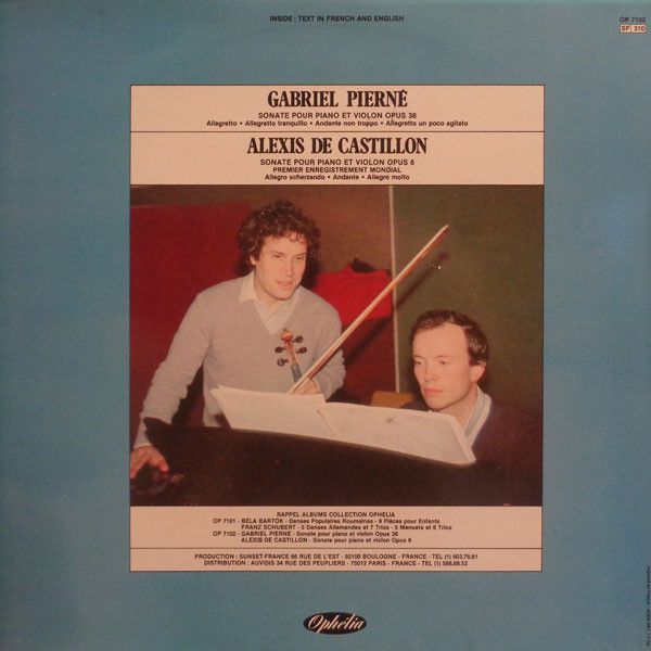 Condition Vinyl Near Mint (NM or M-) Condition Sleeve Near Mint (NM or M-) Tracks included: Sonate Pour Piano Et Violon Opus 36 Composed By : Gabriel Pierné I 1. > Allegretto 2. > Allegretto Tranquillo 3. > Andante Non Troppo - Allegretto Un Poco Agitato Sonate Pour Piano Et Violon O