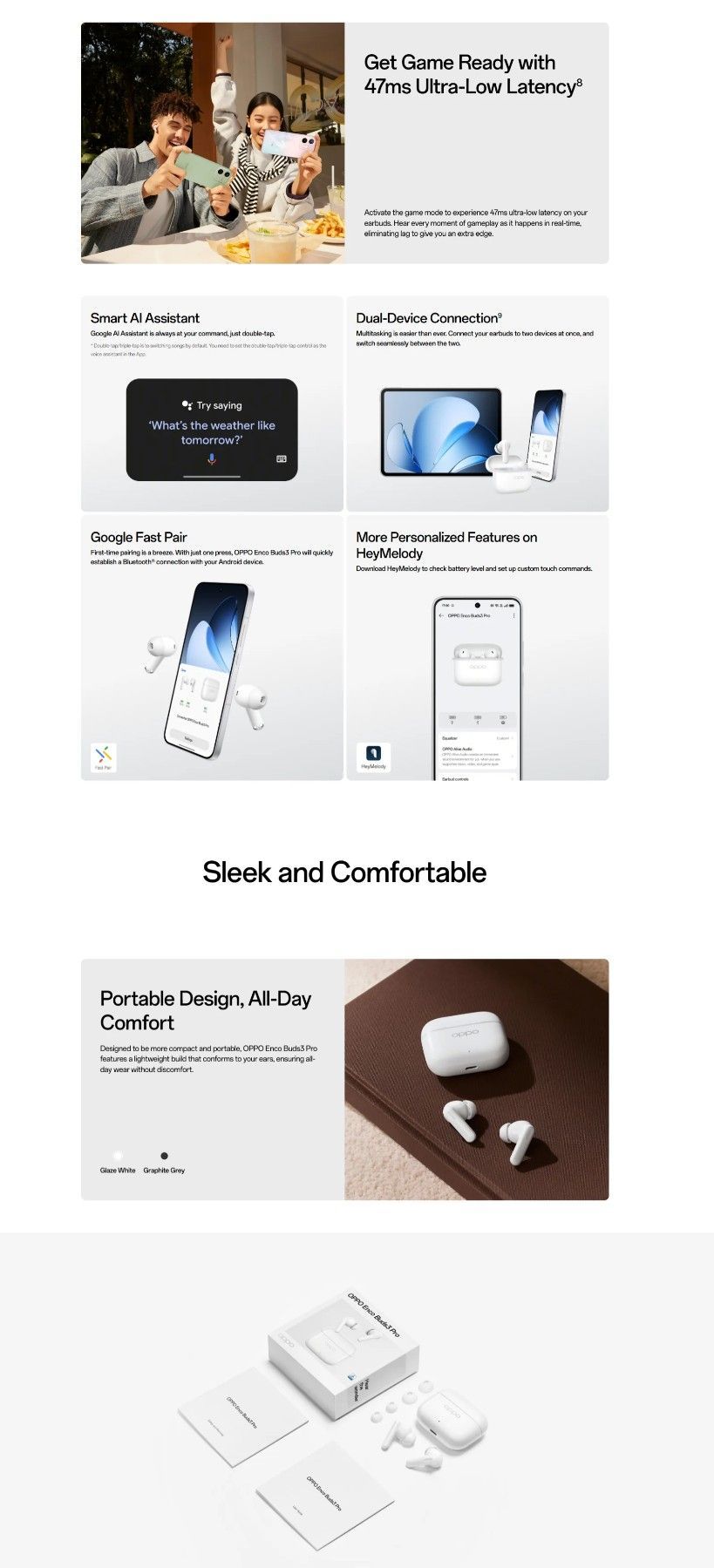 Oppo Enco Buds3 Pro True Wireless In-Ear Kopfhörer mit ANC IP55 Touch Bluetooth