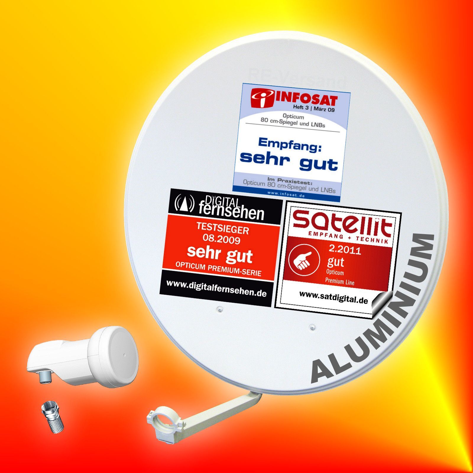Hochqualitative digitale Sat-Antennen bestehend aus 80cm Opticum LH 80 Aluminium SAT-Spiegel in Farbe Hellgrau bzw. Weiß, Opticum Universal- Hochl eistungs-Single-LNB sowie einem F-Stecker zu verkaufen. Die Opticum Sat-Antennen sind sowohl Digital- und Analog-TV , als auch HDTV , 4K UHD und 3DTV tau