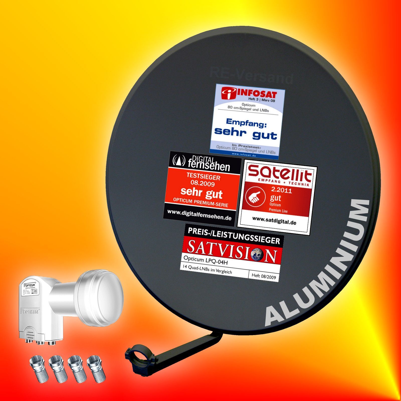 Opticum Opticum 80cm ALU Sat-Antenne + Opticum Quad-LNB Spiegel Aluminium 4 Teilnehmer