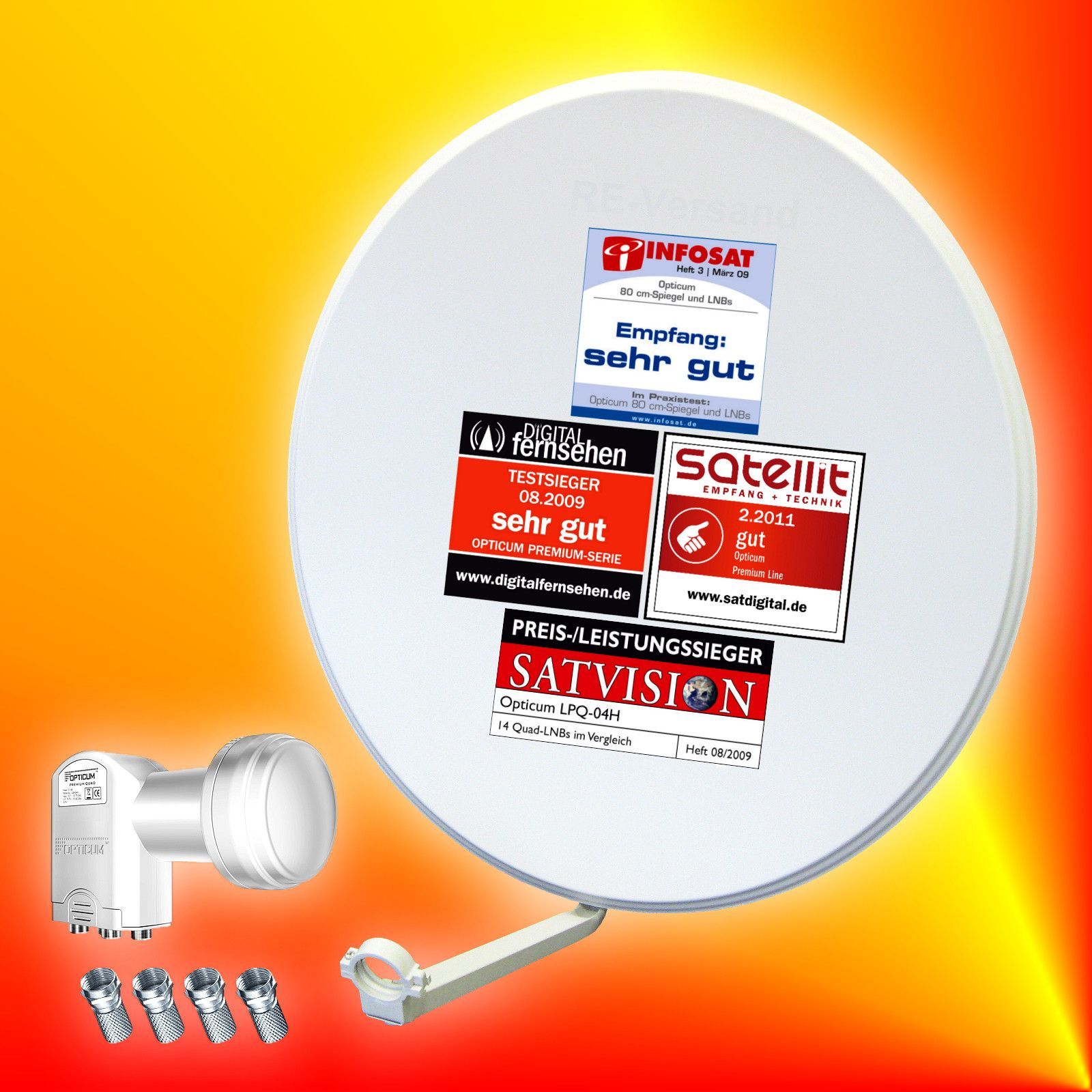Opticum digitale 80cm LH Sat-Antenne+Opticum Quad-LNB Satellitenantenne 4 Teilnehmer