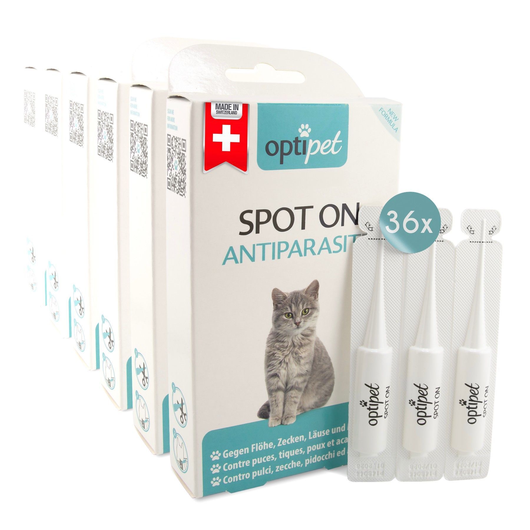 OptiPet 36x1ml Zecken - und Flohschutz Spot-On Katze Schutz auch gegen Milben & Läuse