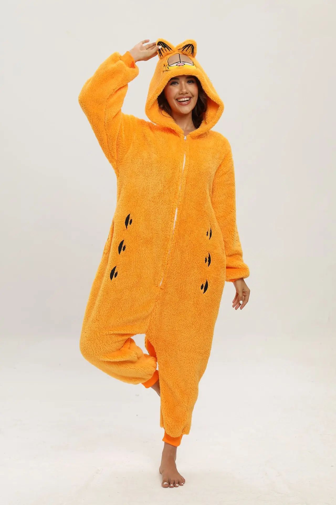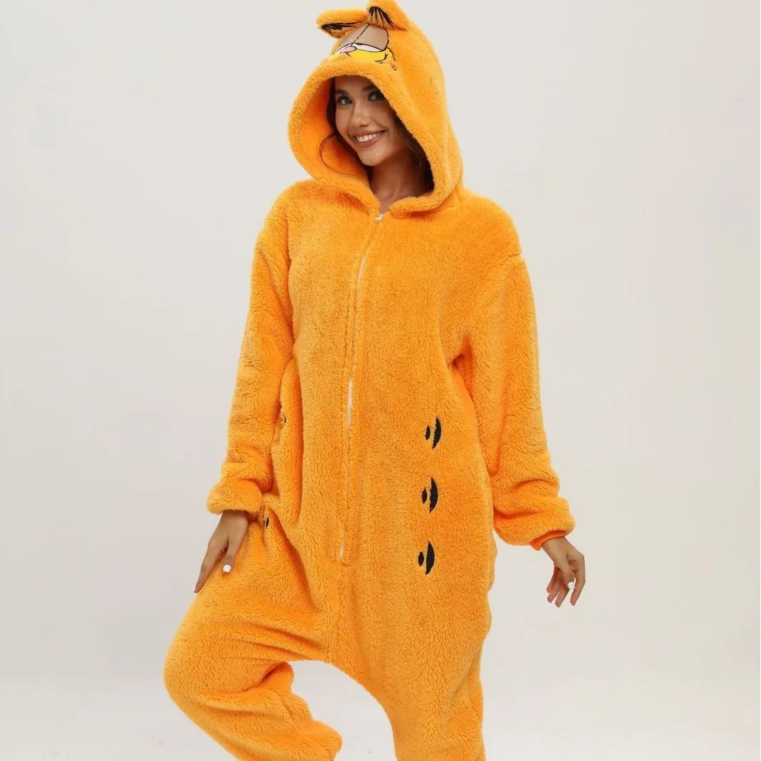 Orange Katze Onesie Erwachsene Kinder Tier Cosplay Pyjamas Plusch Halloween