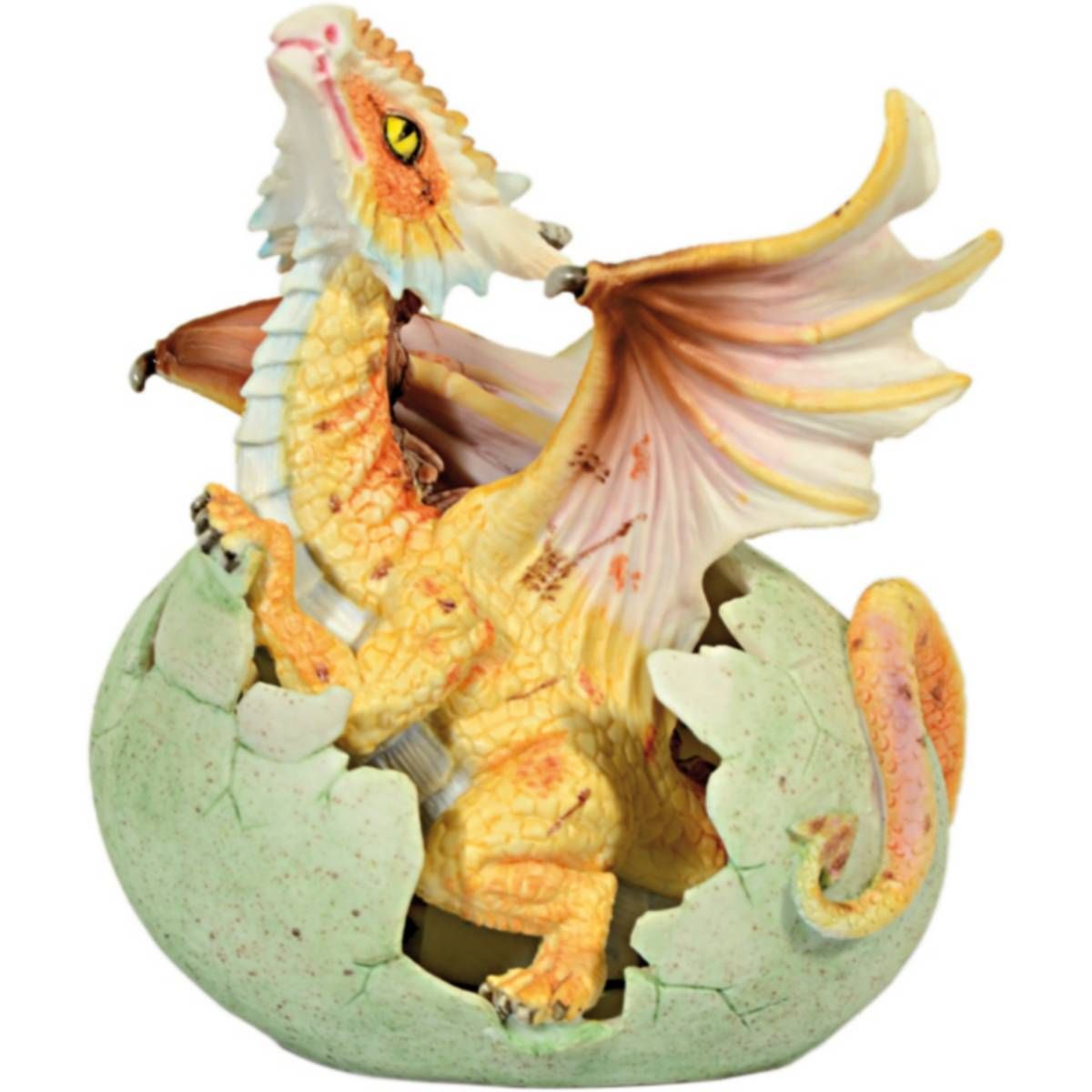 Orangefarbener Drache schaut aus einem Ei raus