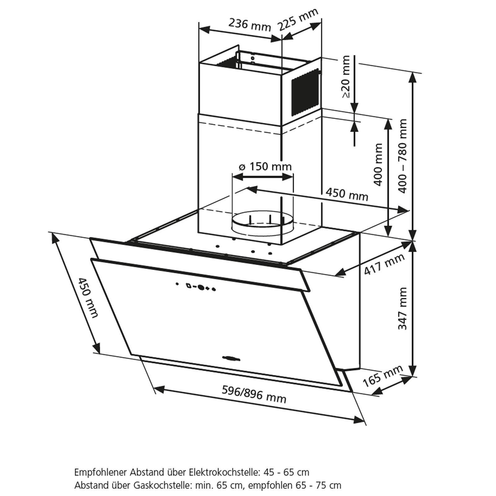 Oranier Oranier breite schwarze Glas Schräg Abluft Wandhaube 90 cm Kandia