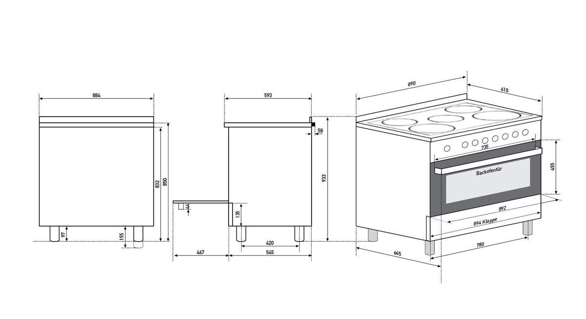 Oranier Oranier breiter freistehender XL Edelstahl Elektro Standherd 90 cm DC 1999
