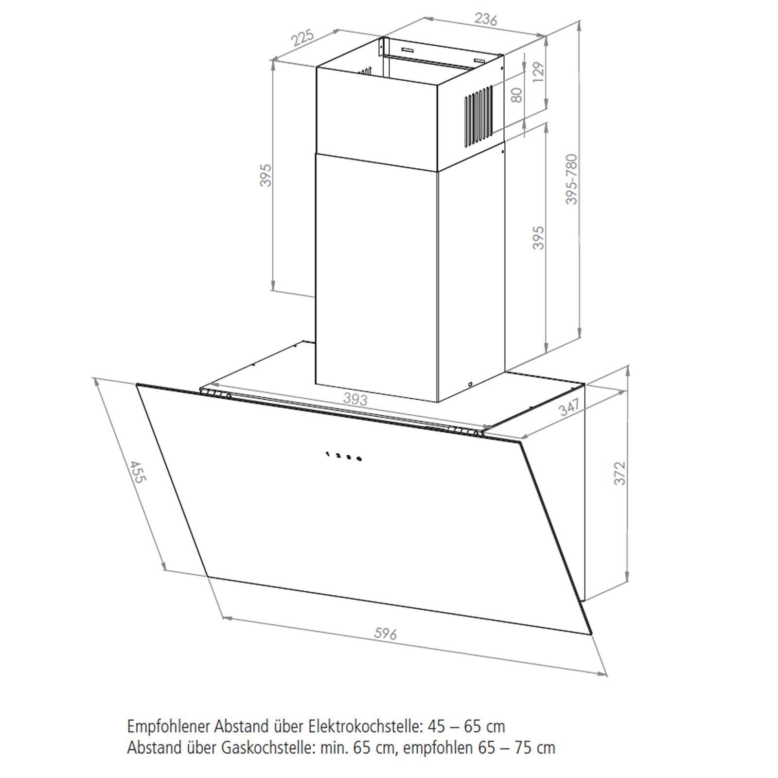 Oranier Oranier Dunstabzugshaube 60 cm schwarz Schräghaube Kopffreihaube Umluft LEA60S1