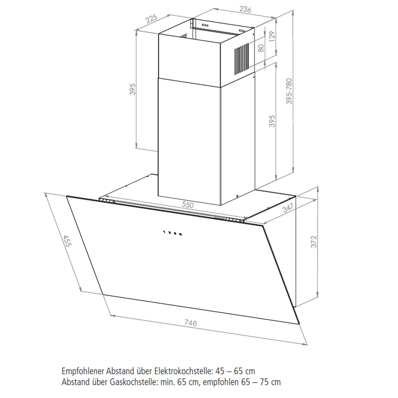 Oranier Oranier Dunstabzugshaube 75 cm schwarz Schräghaube Kopffreihaube Abluft LEA75S1