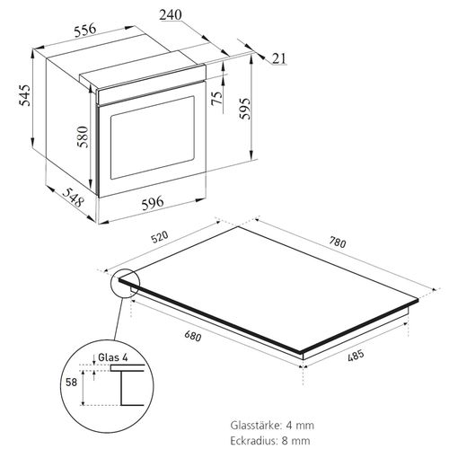 Oranier Oranier Einbau Backofen Set Pyrolyse Touch 14 Funktionen Induktionskochfeld 80cm